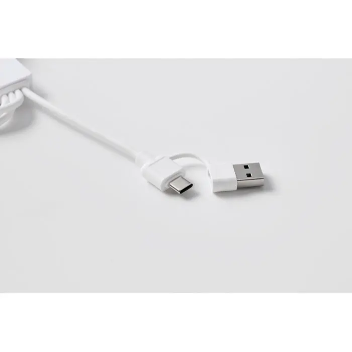 €5.05Key ring with charging cable with input: 2-in-1 type-C & type-A. Output: Watch charging (Samsung® and Apple®), 2 x type-C and micro-B (2 in 1 pin). Cable made of recycled TPE.