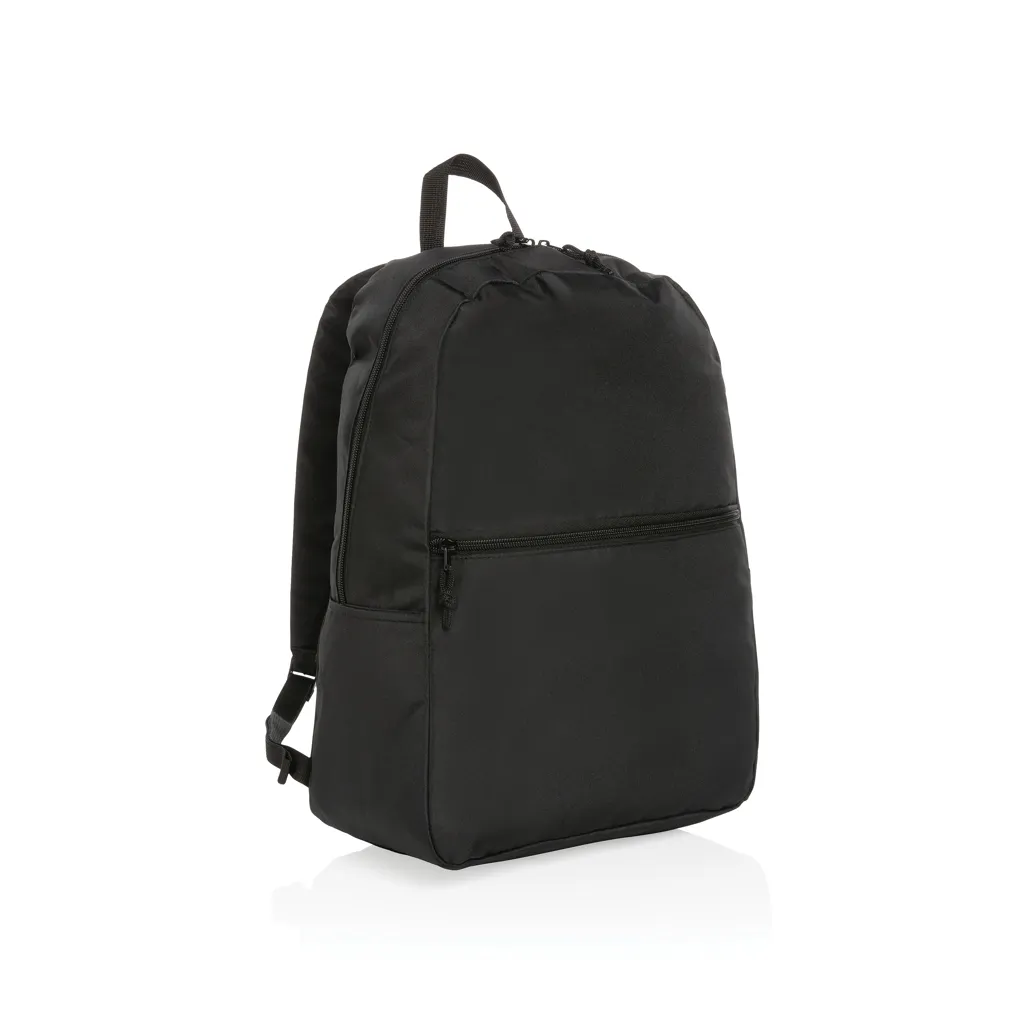 €9.15No greenwashing, but telling a true story about sustainability! This Impact 300D RPET backpack is made with AWARE™ tracer. With AWARE™, the use of genuine recycled fabric materials and water reduction impact claims are guaranteed, by using the AWARE disruptive physical tracer and blockchain technology. Save water and use genuine recycled fabrics. With the focus on water 2% of proceeds of each Impact product sold will be donated to Water.org. Keep it simple and stylish with this basic backpack. A perfect size for all your essentials and a convenient front zipper pocket. This backpack has reused 11,5 500ml PETbottles. Water savings are based on figures when compared to conventional fibre. This calculated indication is based on reliable LCA data as published by Textile Exchange in their Material Snapshots 2016.