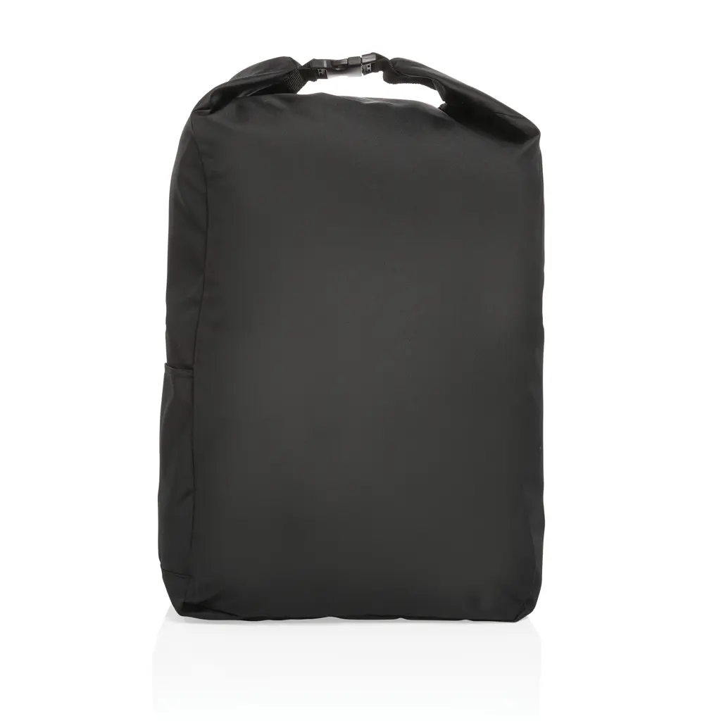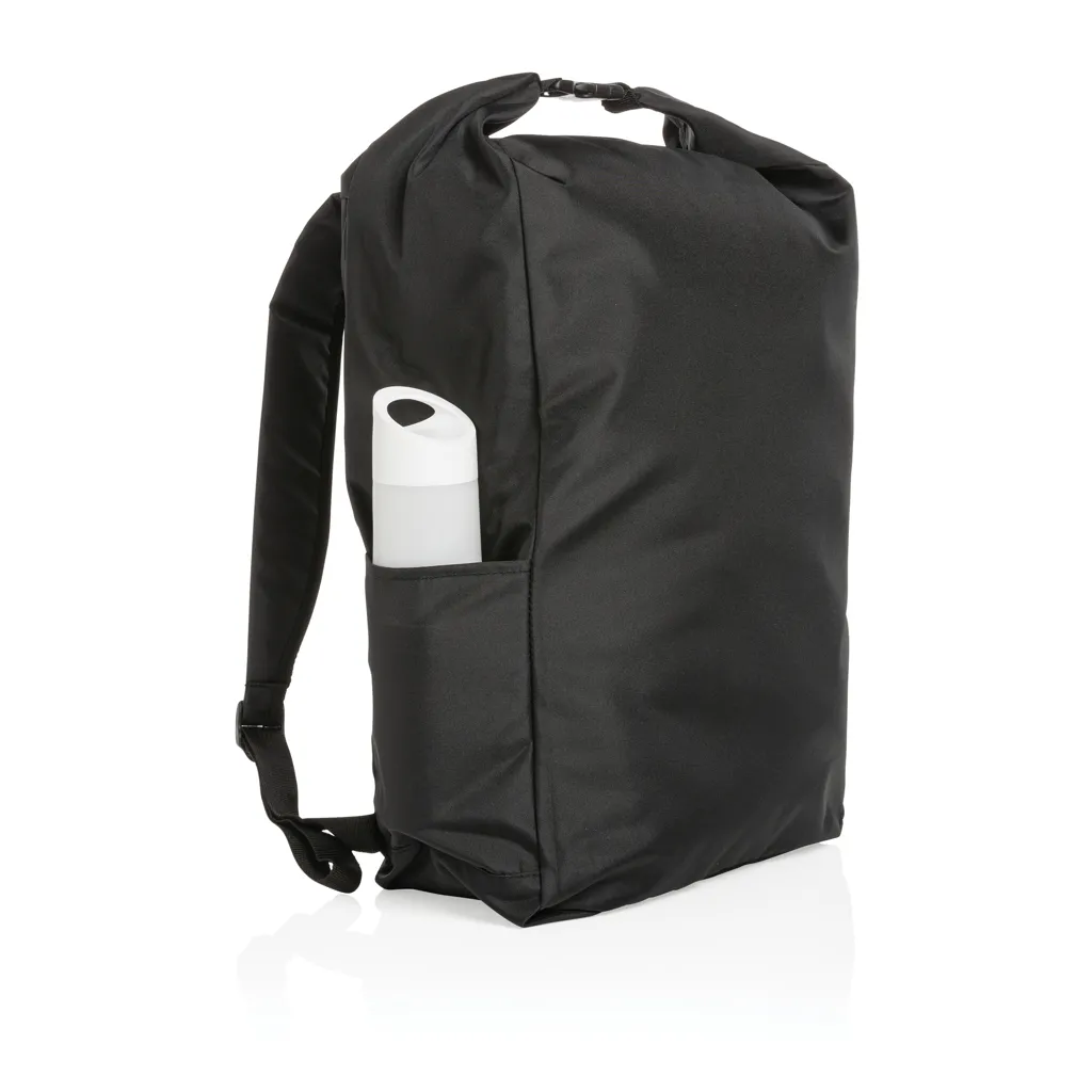 €11.97No greenwashing, but telling a true story about sustainability! This Impact 300D RPET rolltop backpack is made with AWARE™ tracer. With AWARE™, the use of genuine recycled fabric materials and water reduction impact claims are guaranteed, by using the AWARE disruptive physical tracer and blockchain technology. Save water and use genuine recycled fabrics. With the focus on water 2% of proceeds of each Impact product sold will be donated to Water.org. Keep it simple and stylish with this rolltop backpack. A perfect size for all your essentials. This backpack has reused 11,6 500ml PETbottles. Water savings are based on figures when compared to conventional fibre. This calculated indication is based on reliable LCA data as published by Textile Exchange in their Material Snapshots 2016.