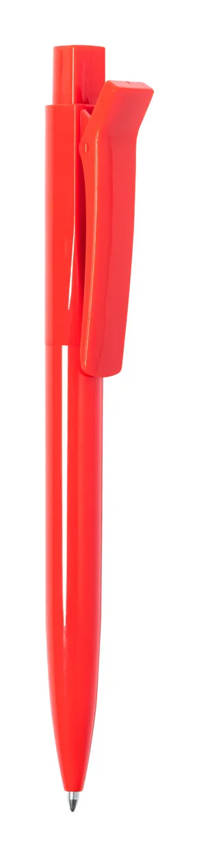 ABS plastic ballpoint pen with special clip and blue refill.