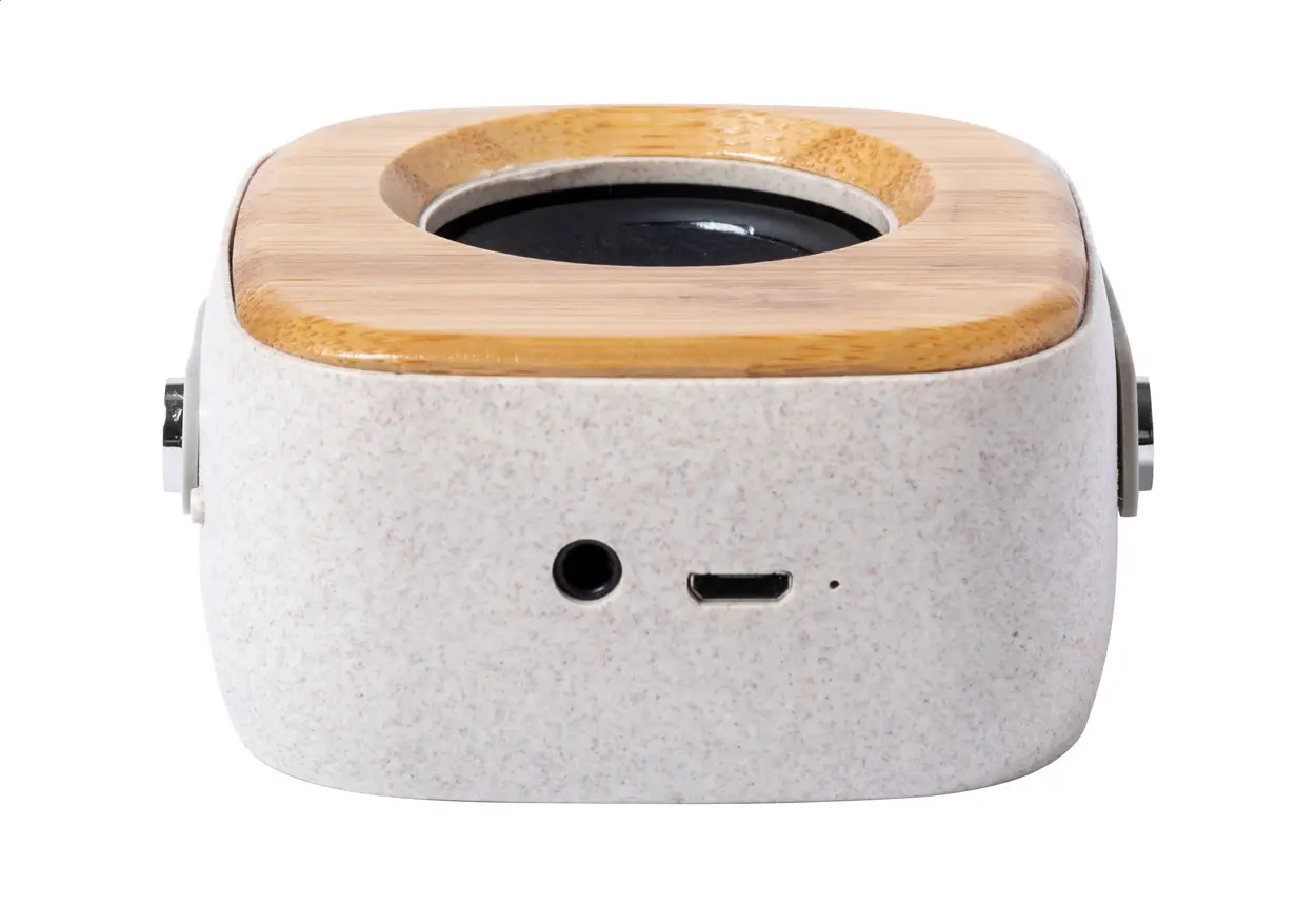 €27.20Bluetooth speaker in bamboo and ecological wheat straw plastic housing with built-in rechargeable battery. Including USB charger cable.