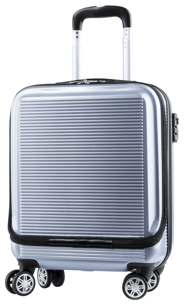 Rigid plastic trolley bag with 4 wheels, telescopic handle and TSA combination lock. With 2 zipped compartments, including padded laptop pocket.