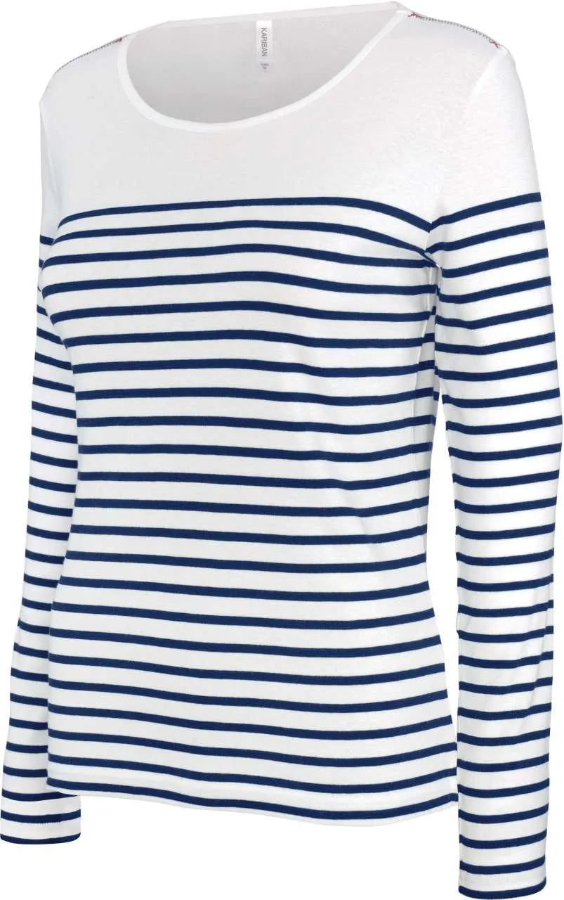 ladies’ long-sleeved breton stripe top