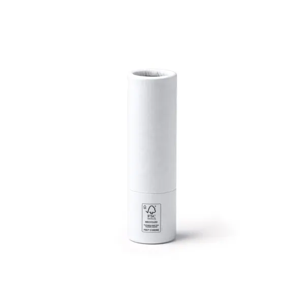 Lip balm in a recycled cardboard stick case. FSC certified. SPF15 protection.