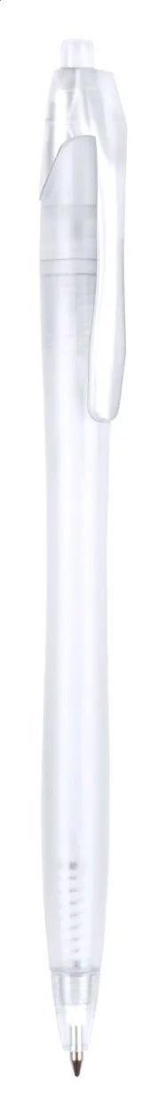 Translucent plastic ballpoint pen with blue refill.