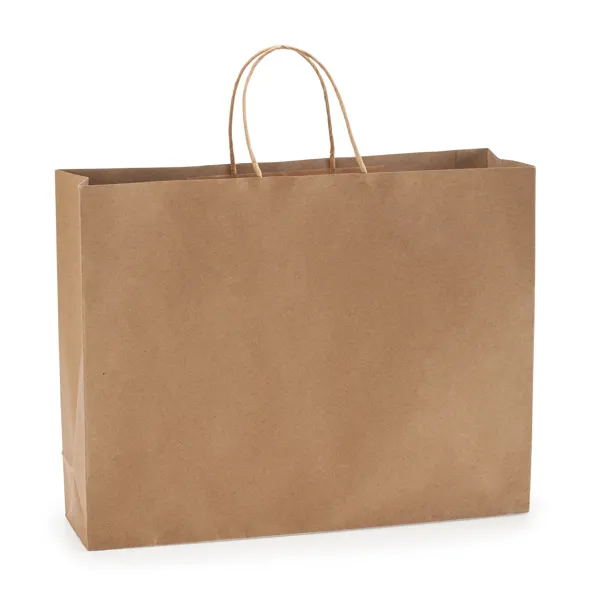 110 gsm paper bag in natural finish, with reinforced short handles in a twisted design.