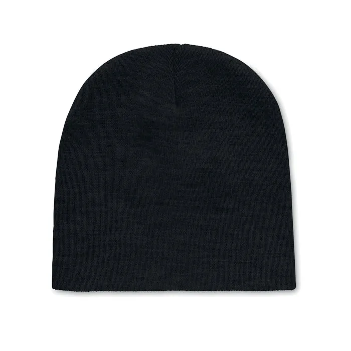 Unisex knitted Beanie hat in soft stretchable RPET polyester.
