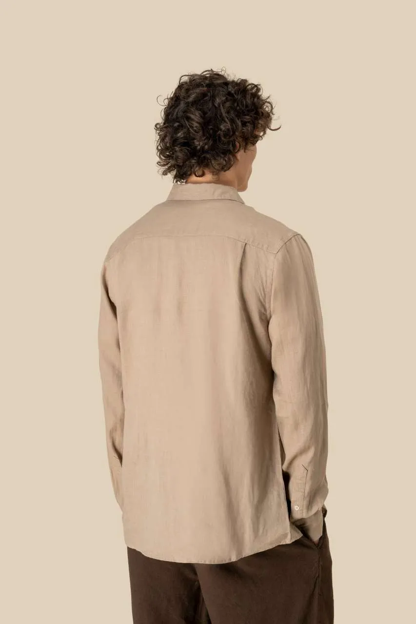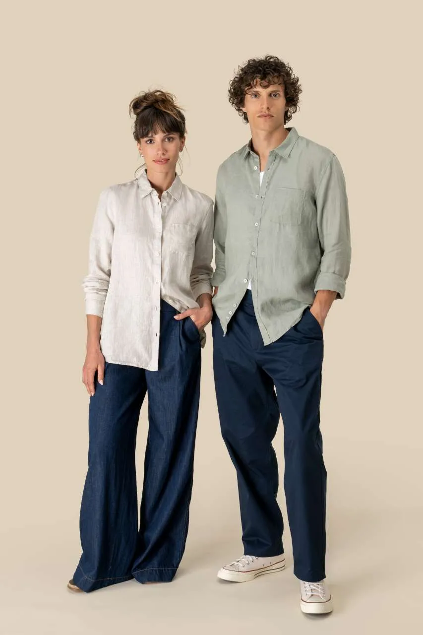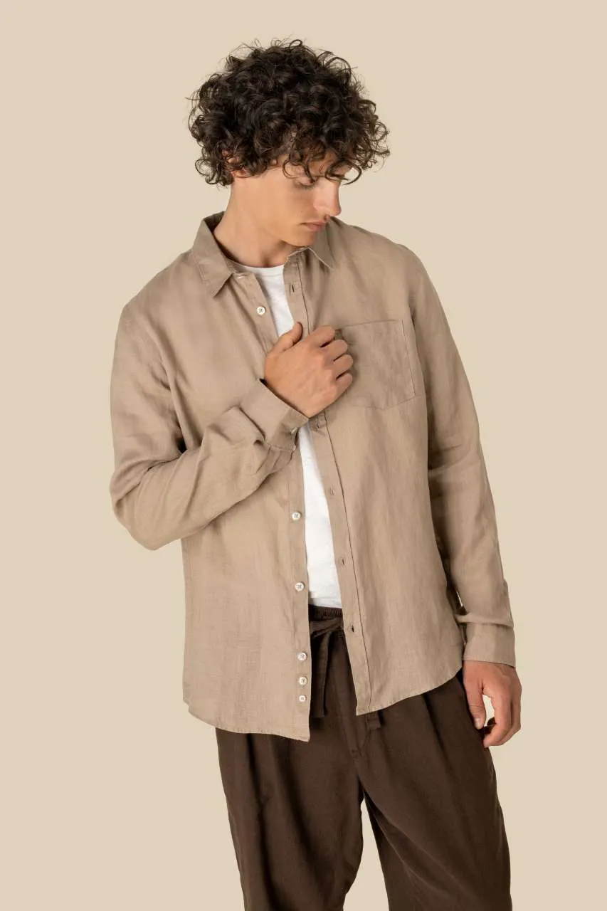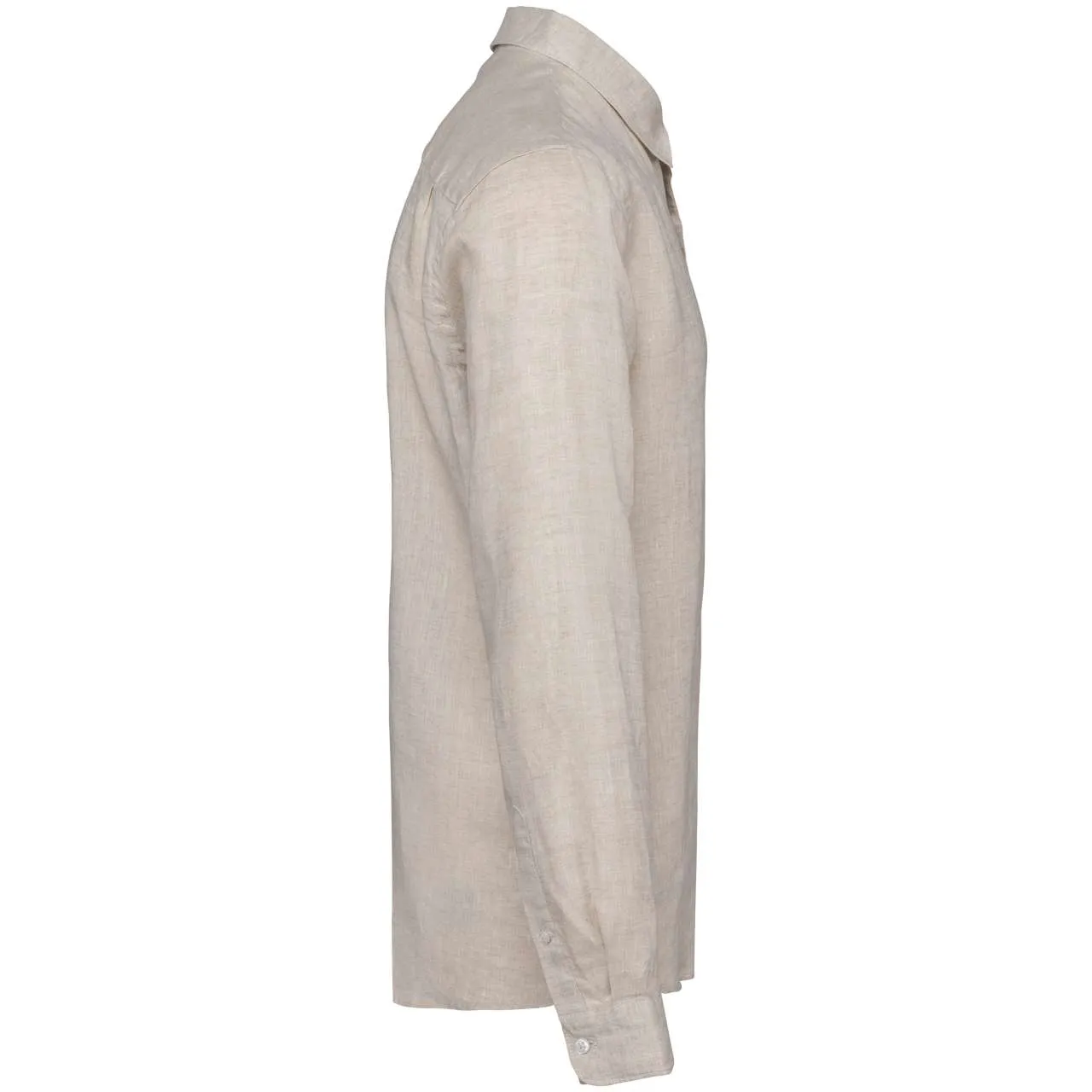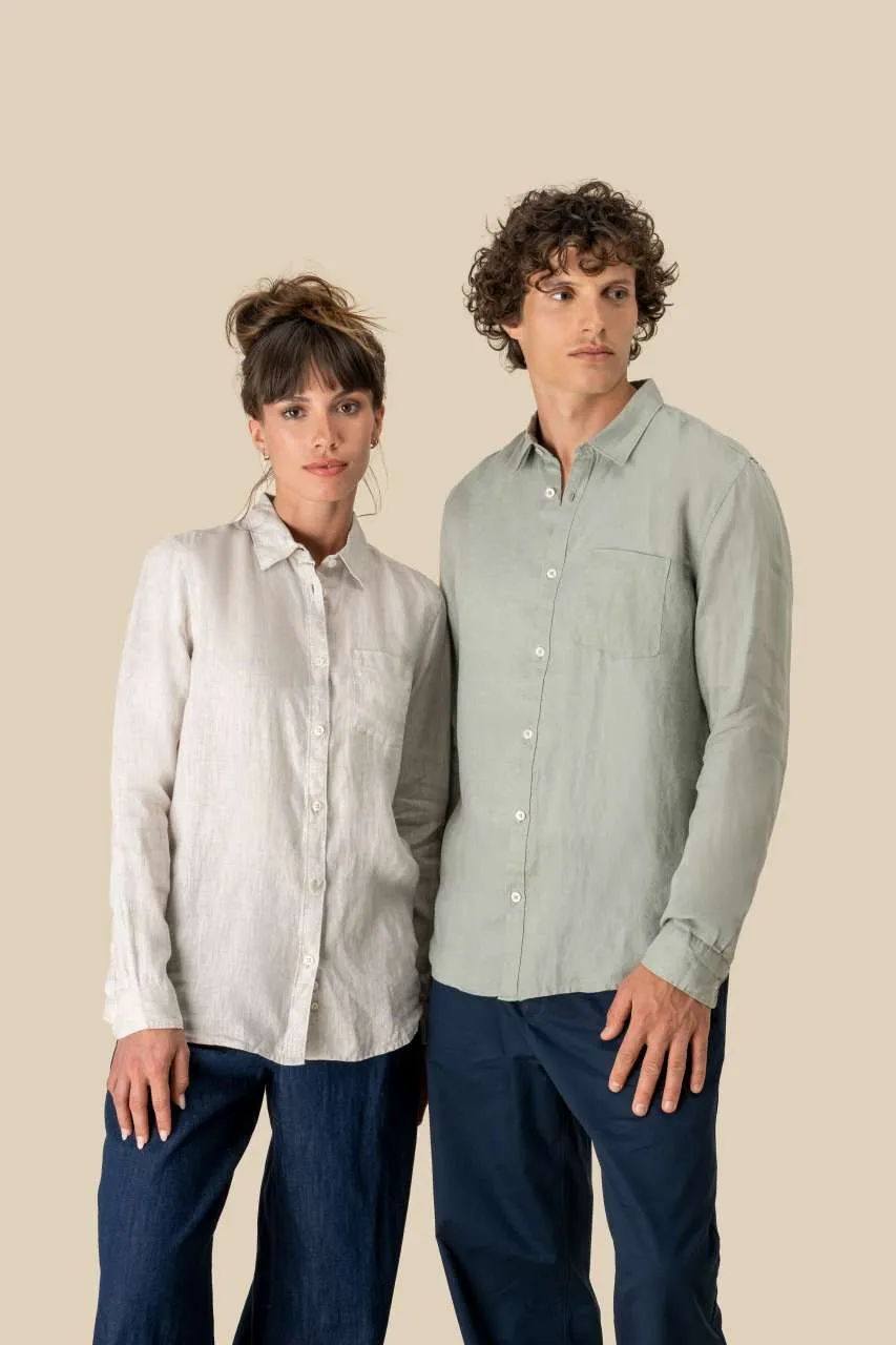 100% linen Woven Straight fit Classic placket with pearlised buttons Chest pocket on left-hand side Back yoke with pleats Wrist cord with doghouse placket Contrasting Natural trim inside collar stand The Linen colour does not come from dyeing and may vary from product to product.
