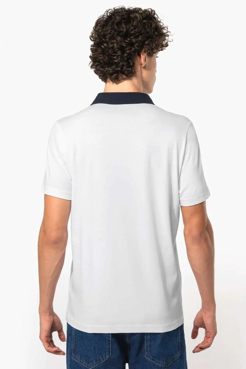 Contrasting neck and inner placket with 3 white faux pearl buttons