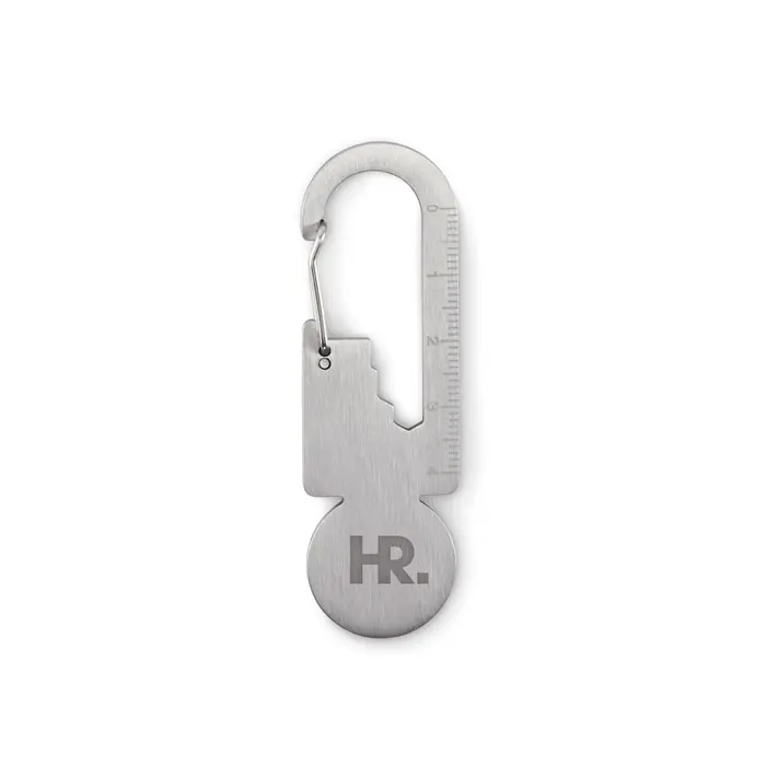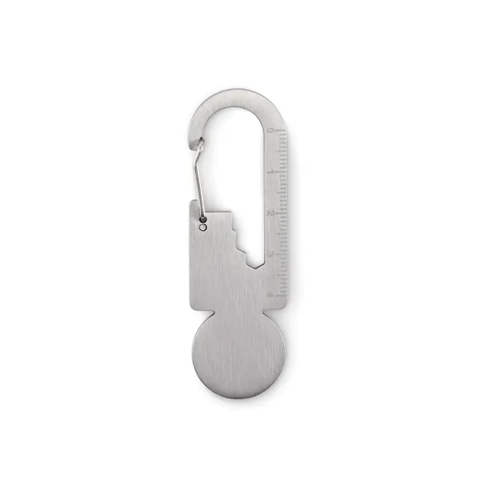 €0.55Trolley token with key ring in recycled stainless steel with multi-function tool including bottle opener, ruler and hex driver wrench (M1/M2/M3/M4).