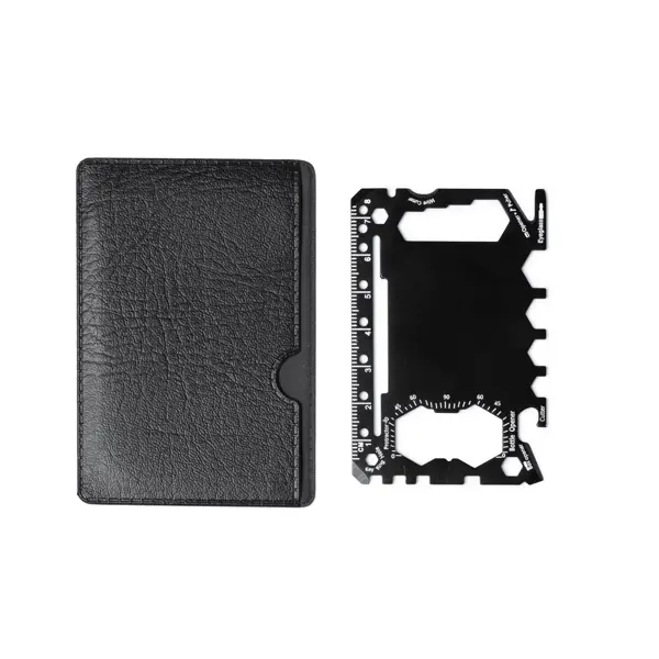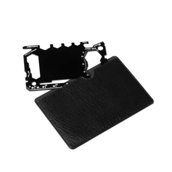 €0.92Stainless steel multi-tool with 17 in-built functions. Versatile tool that includes: a can opener, a sharp knife, a screwdriver, a ruler, a bottle opener, an adjustable spanner, a buttlerfly wrench, a saw, a direction indicator and an angle transporter. Presentation in a PU case.