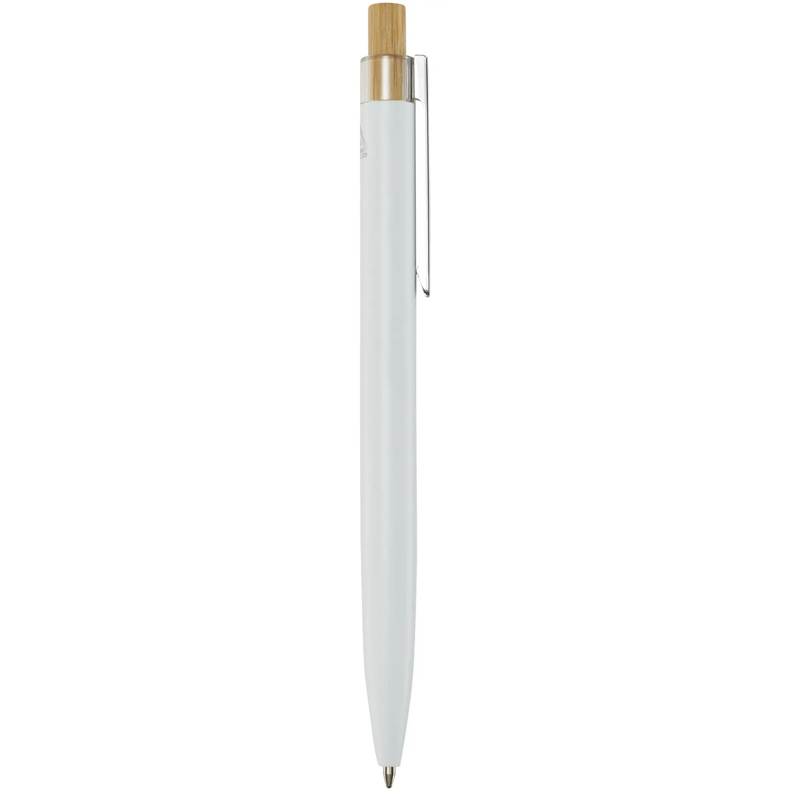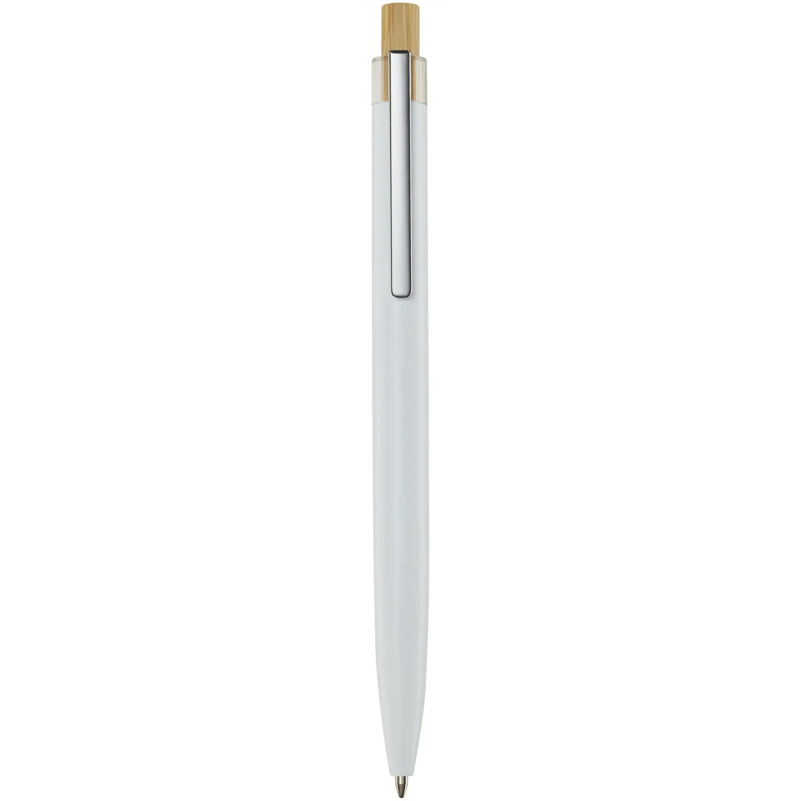 The Nooshin ballpoint pen is made from recycled aluminium, which requires less energy than producing aluminium from raw materials. It also reduces the amount of waste in landfills and helps to conserve natural resources aiming to reduce greenhouse emissions. The push button is made of bamboo. Ink colour: Blue. Writing length: 800 metres. Nib size: 1.00 mm.