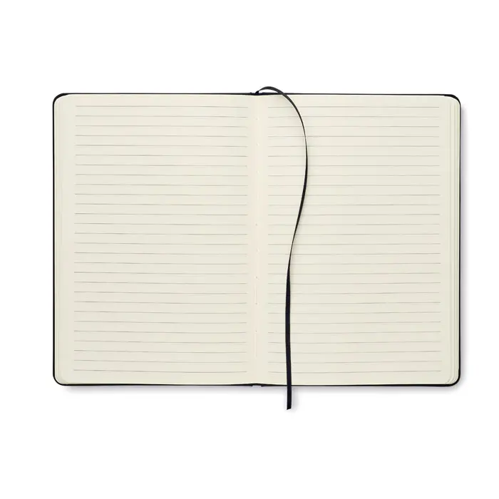 €2.96A5 notebook set with 600D RPET hard cover. Front elastic band phone holder function and front pen loop with push ball pen with bamboo grip detail. Case bound. 160 recycled paper lined pages (80 sheets). Includes envelope inside the back cover. Elastic closure strap. Ribbon bookmark. Blue ink. FSC®-certified | FSC MIX CREDIT, P7.1 , FSC-C213206