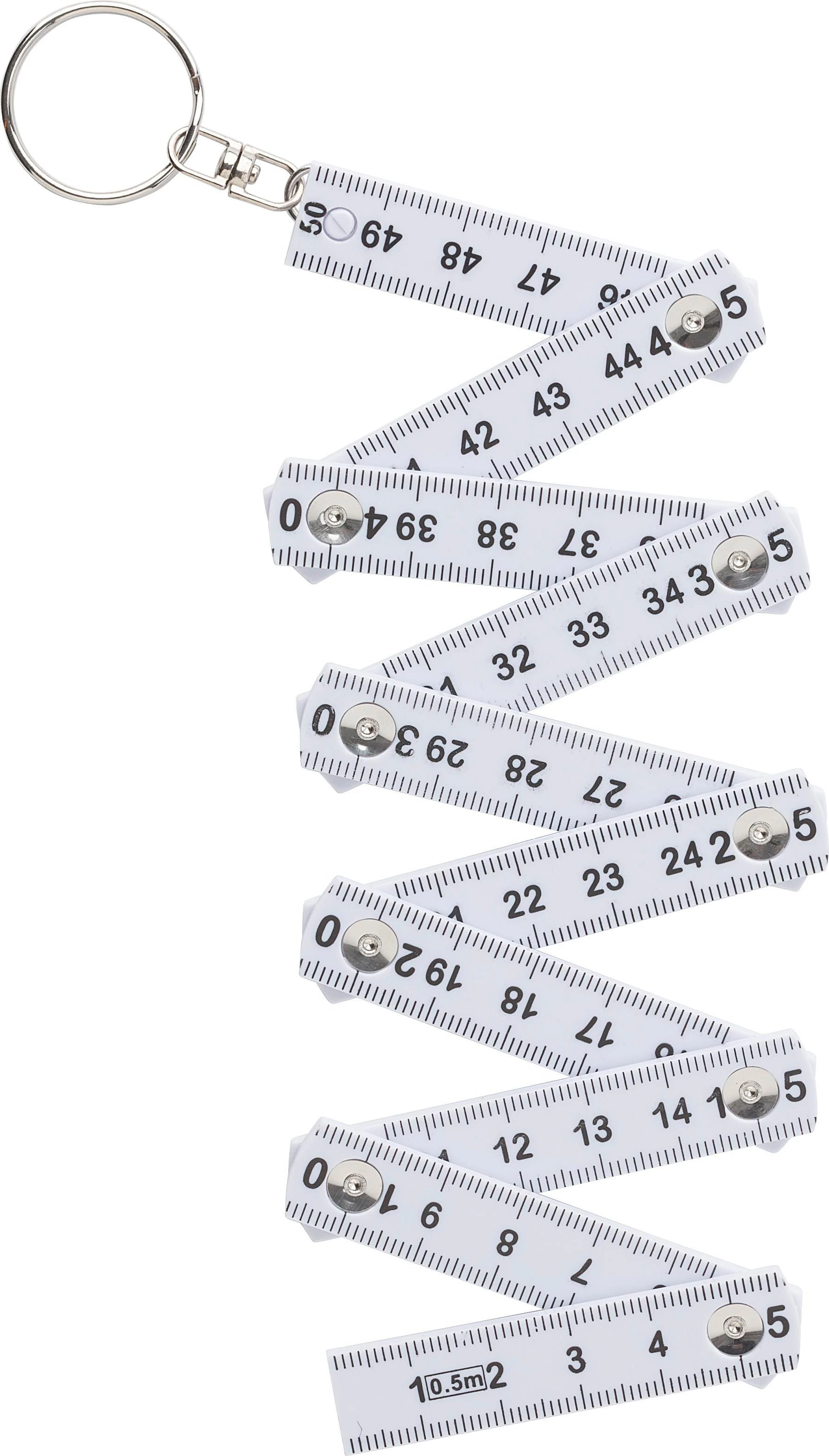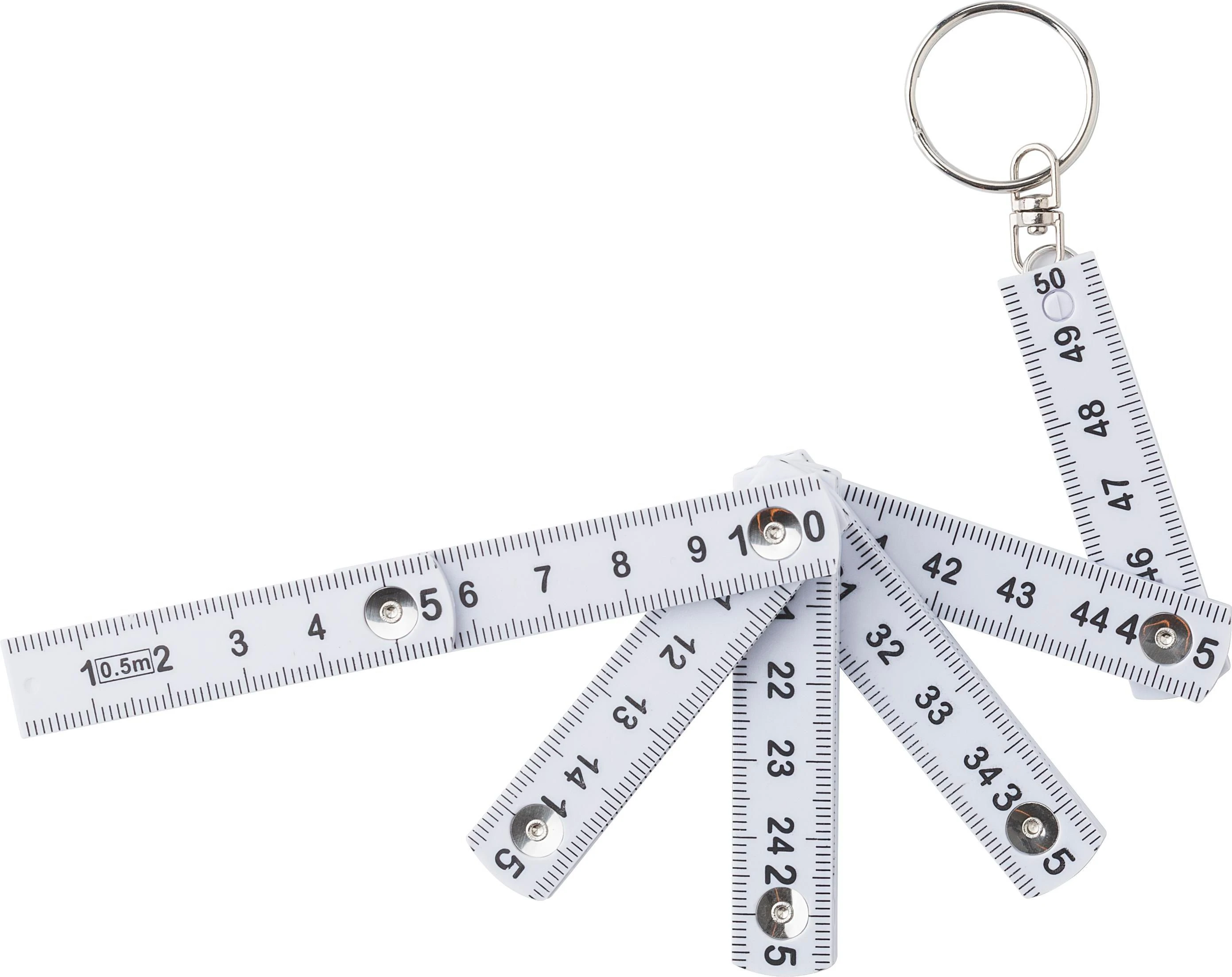 Plastic foldable ruler, total length: 0,5 meter. Including keychain.