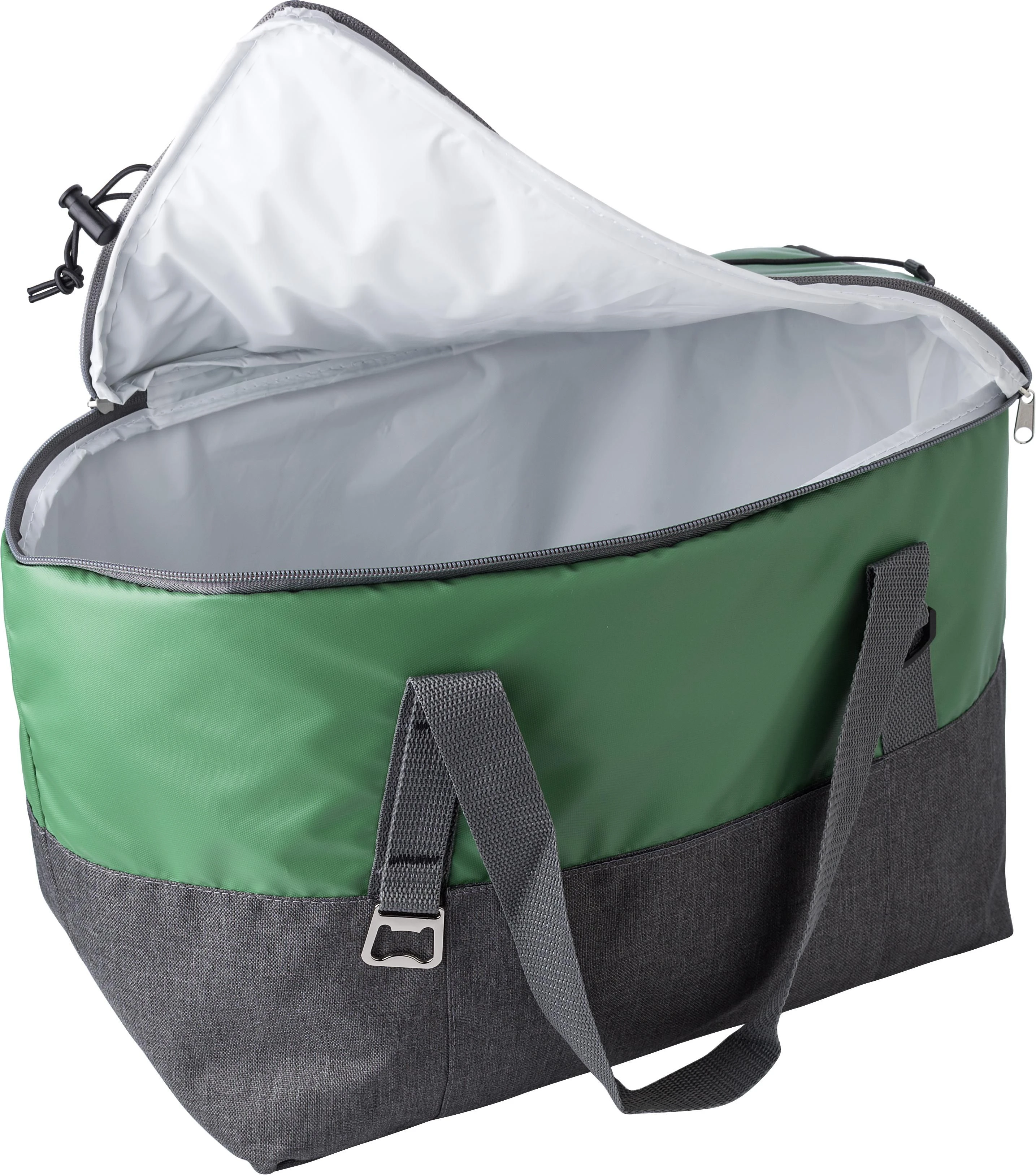 Polycanvas (600D) cooler bag with PEVA interior lining and adjustable straps.