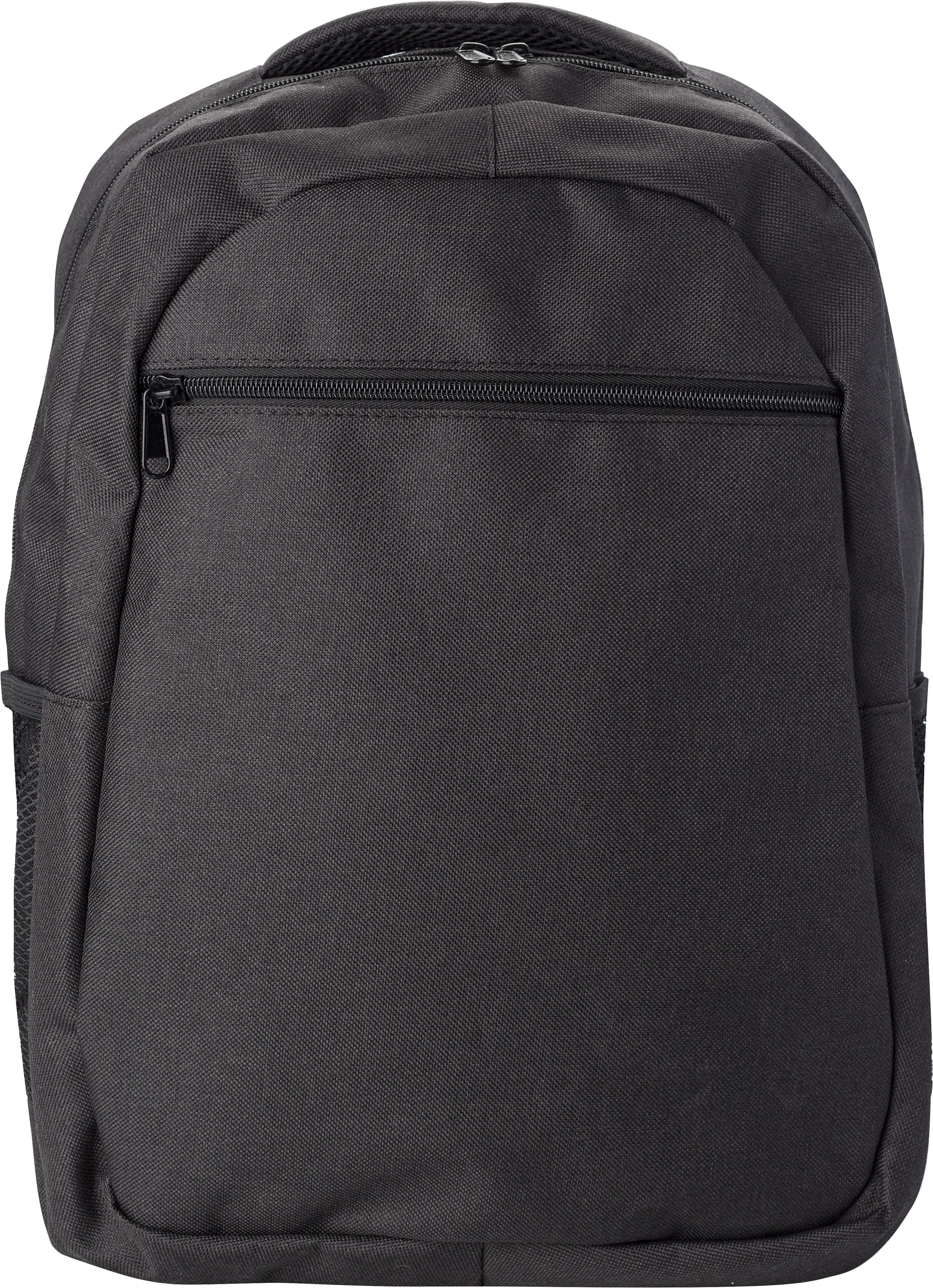 €7.89Polyester (600D) backpack with zipper front pocket, and adjustable shoulder straps. Inside pocket for laptop up to 15 inches. Mesh pocket on 2 sides.