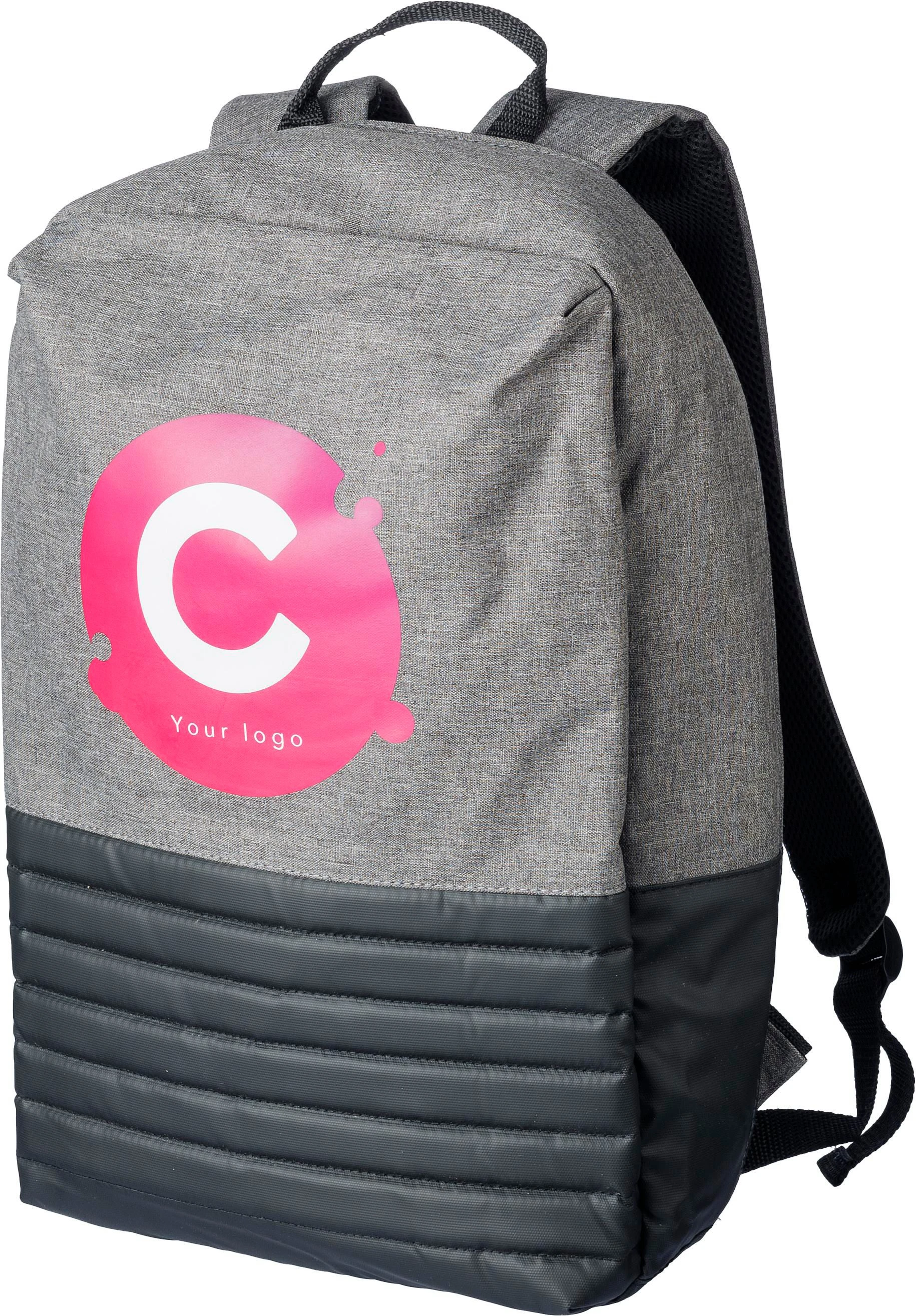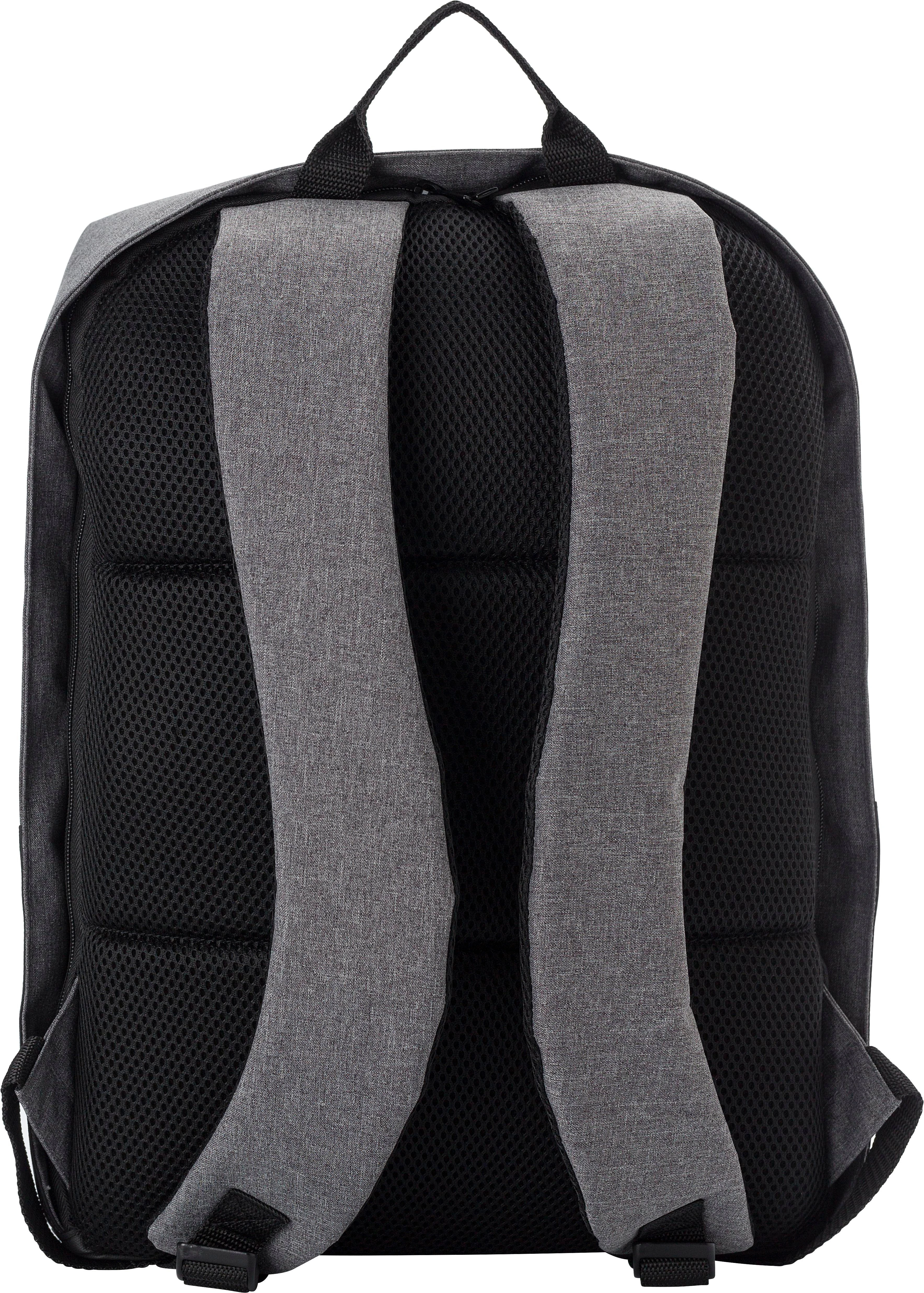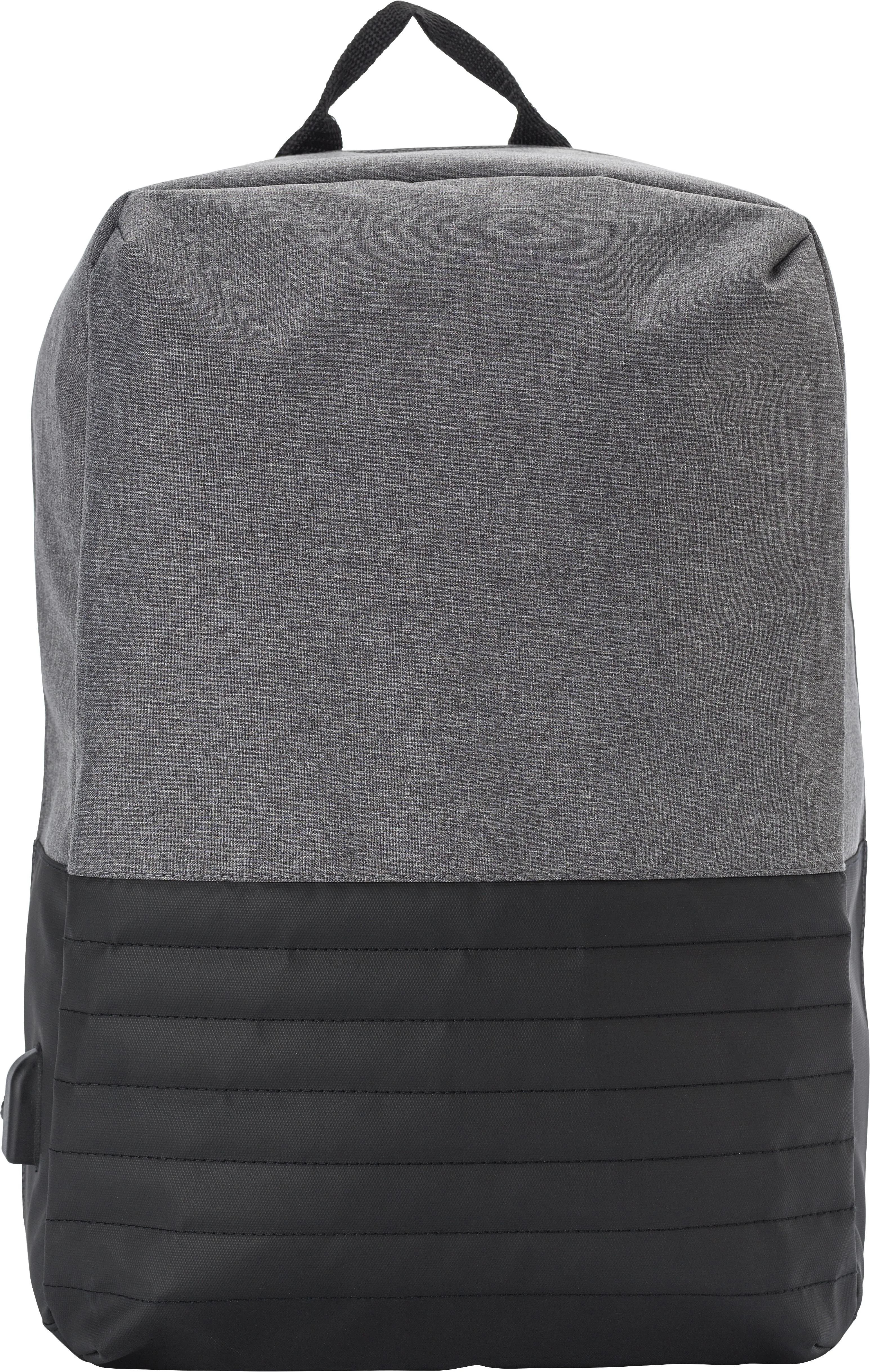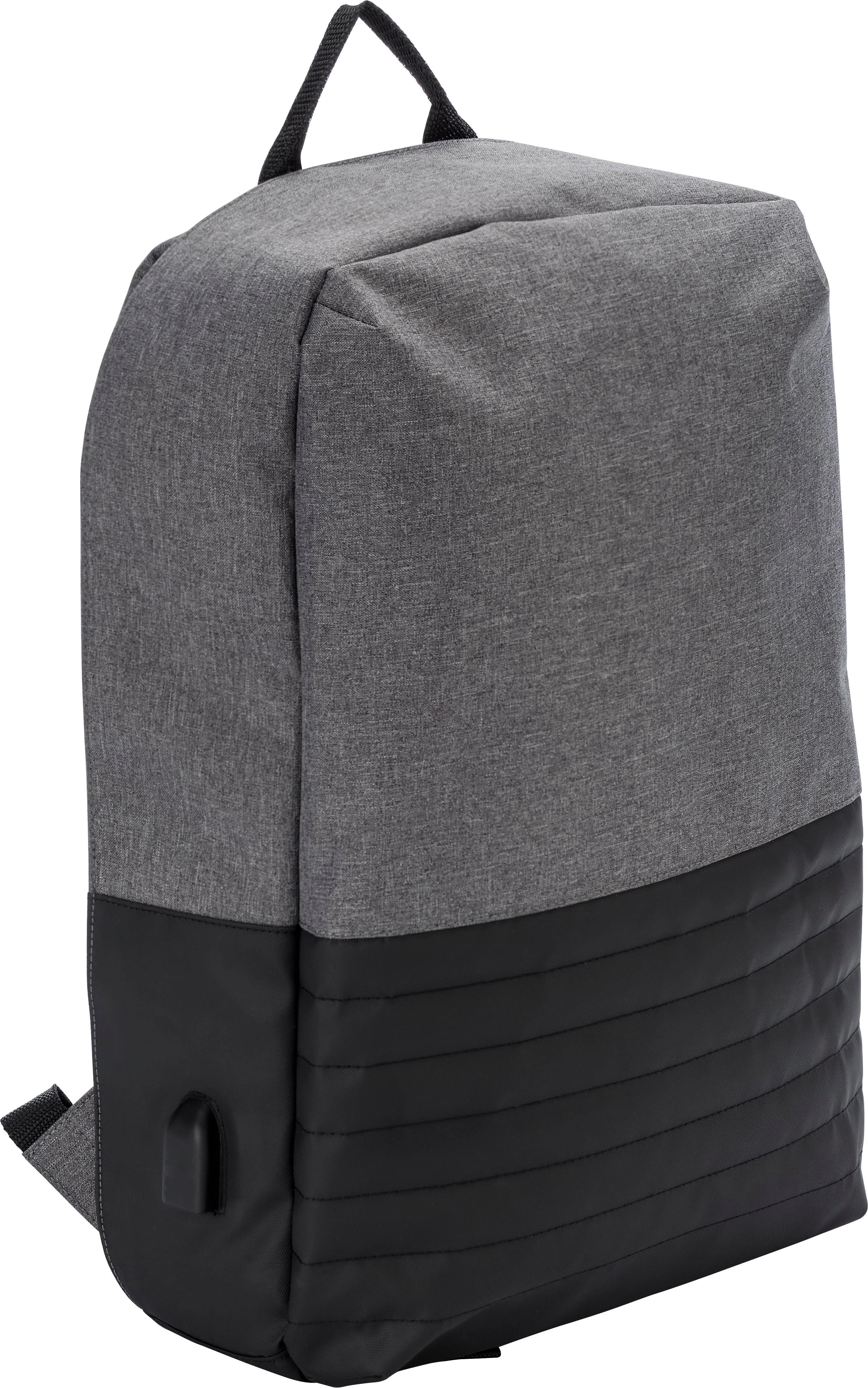 €17.56PVC (600D + 300D) anti-theft backpack with adjustable and padded shoulder straps, as well as a padded back. Large main compartment with a zipper and padded laptop compartment (15 inch). USB port on the exterior, with a cable on the interior.