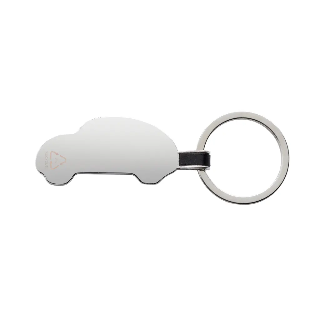 €1.41Car shaped keychain made from RCS recycled zinc alloy. Total recycled content: 84% based on total item weight. RCS certification ensures a completely certified supply chain of the recycled materials. Packed in paper bag.