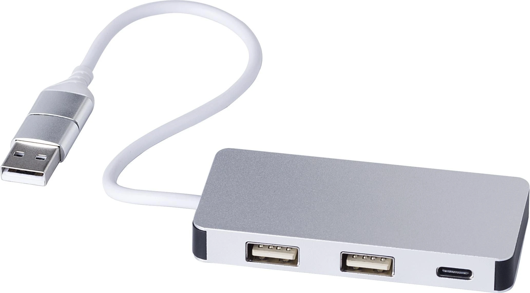 €5.92Aluminium USB Hub with 3 ports. Two USB A, one USB C port. Recycled logo engraved on the front.