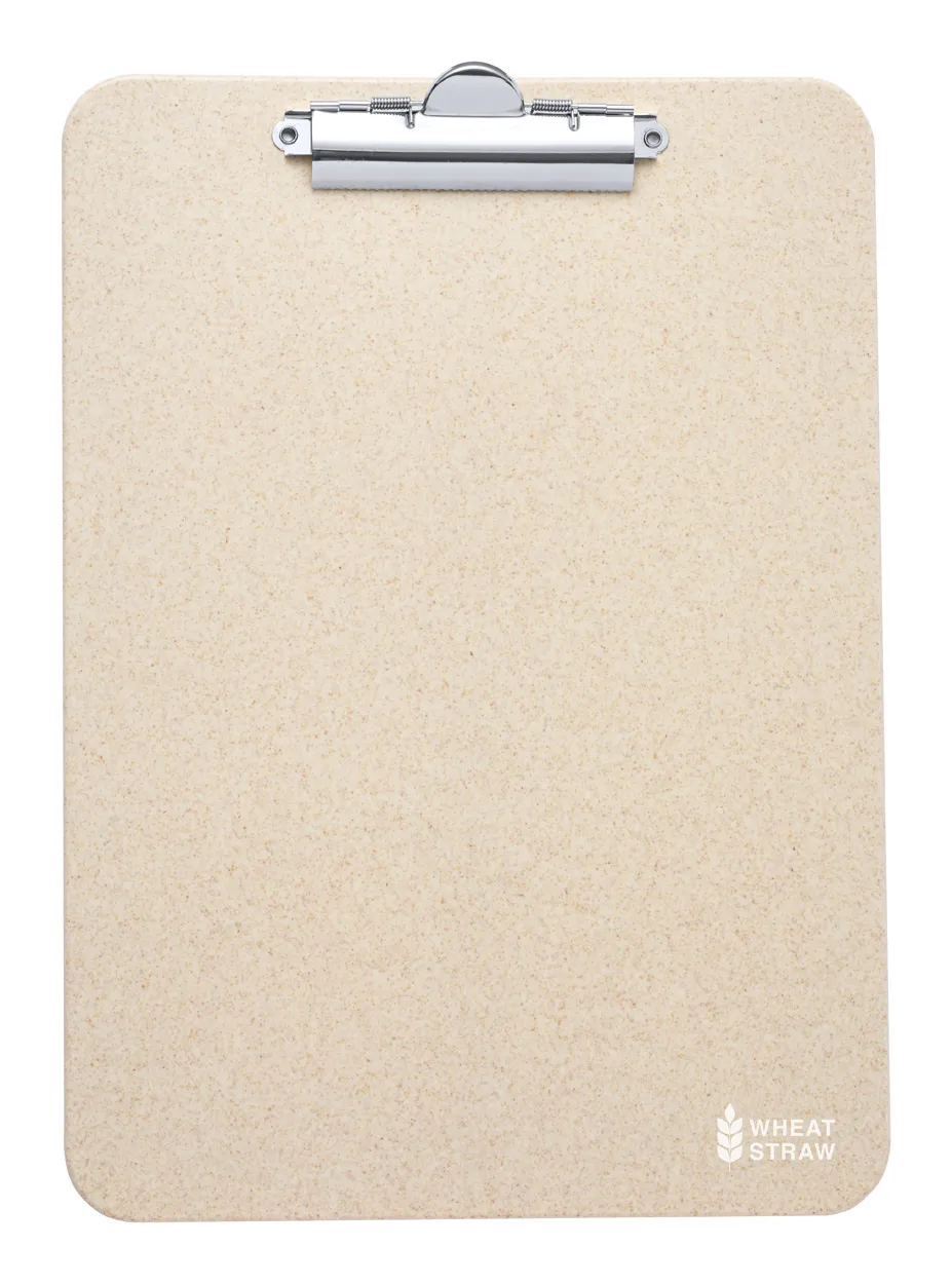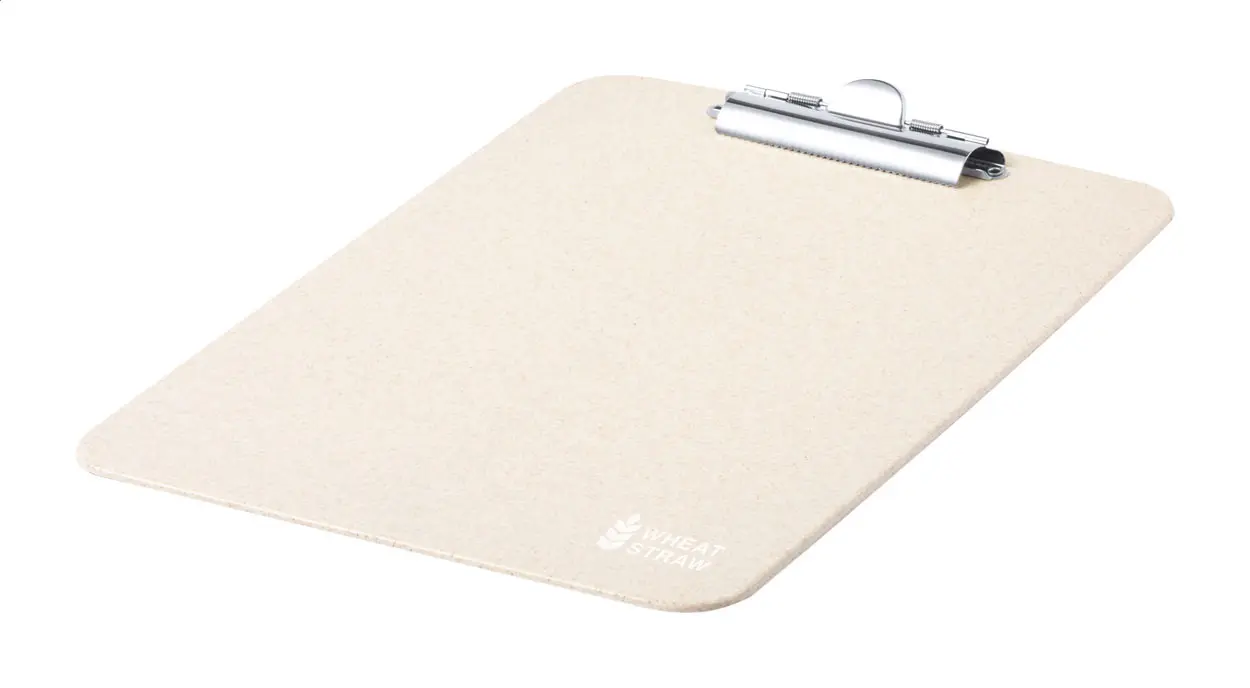 A4 sized wheat straw plastic clipboard with metal clip.