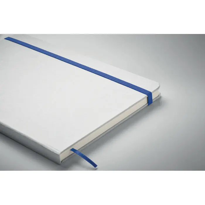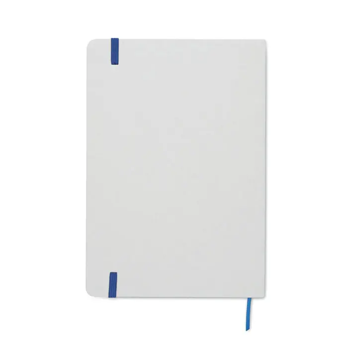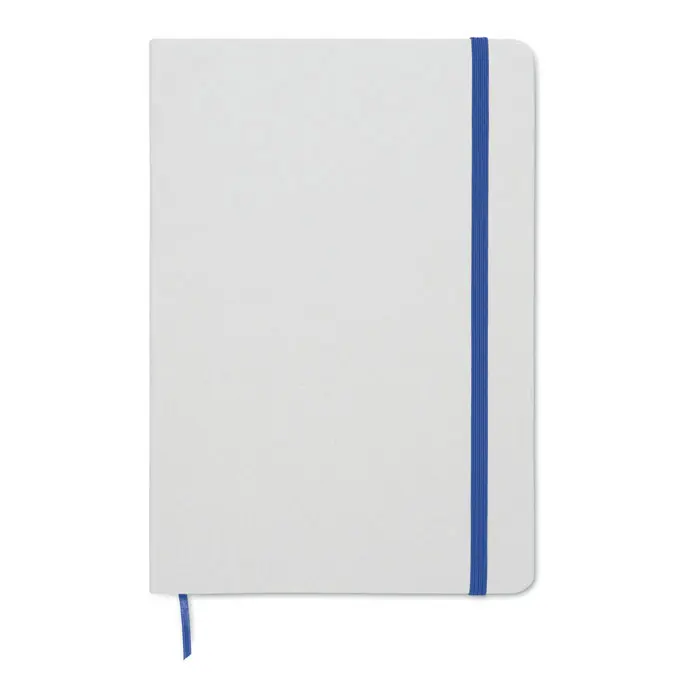 €1.94A5 notebook with hard cover made of 70% recycled milk carton pack and 30% recycled paper. White cover. Casebound. 160 lined recycled paper pages (80 sheets). Elastic closure strap, ribbon bookmark matching with revealed colour. After laser engraving the colour is revealed.