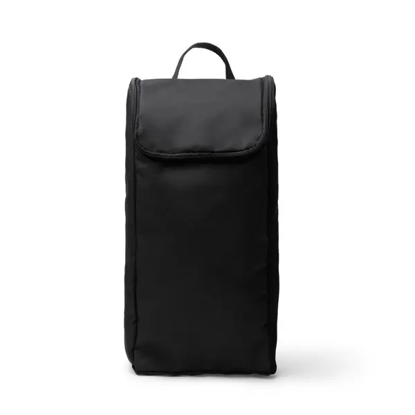 Shoe bag made from RPET 600D with breathable mesh fabric on one side to allow airflow making them breathable. Features a colour zip closure and a padded base on the back.