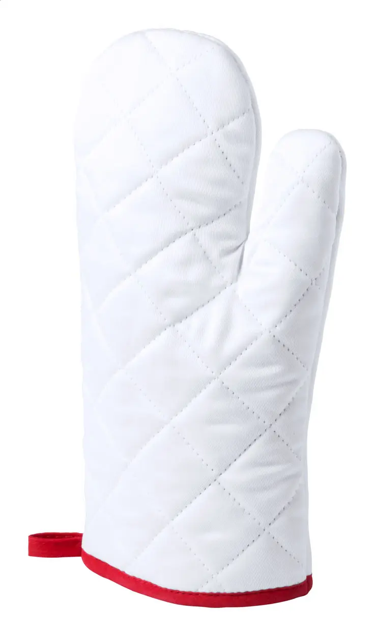 Polyester oven mitt with coloured trimming, 1 pc. Ideal for sublimation printing.