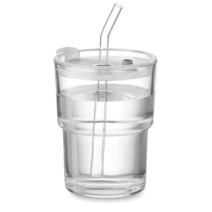 €1.94Glass tumbler with lid including removable glass straw. Straw socket and direct drink opening leak-free lid. Capacity 400 ml.