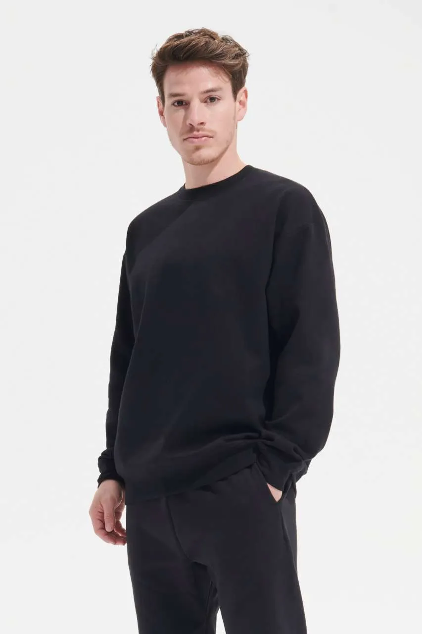 Quality - Brushed fleece 280 80% cotton - 20% recycled polyester Style - Round neck 2x2 ribbed cuffs, collar and hem Neck tape Set-in sleeves Side-seamed construction For the tubular version click here!