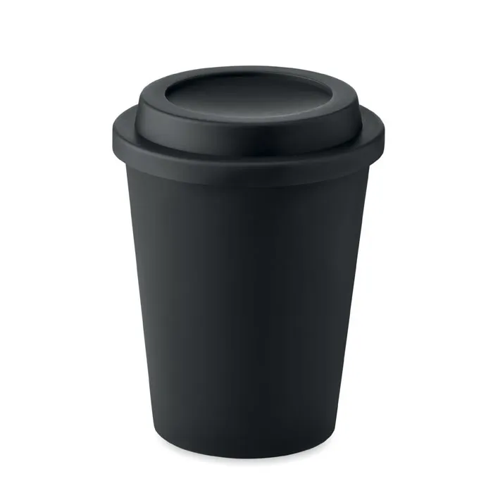 Double wall tumbler in PP with lid. Capacity: 300 ml.