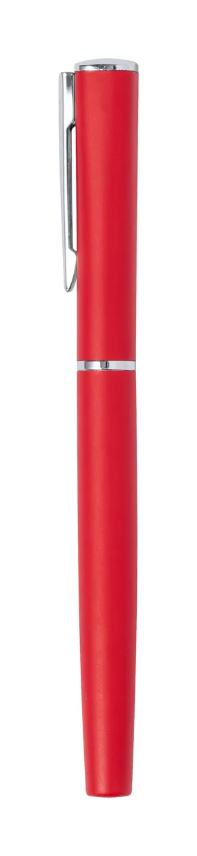 Aluminium roller pen with cap and blue refill.