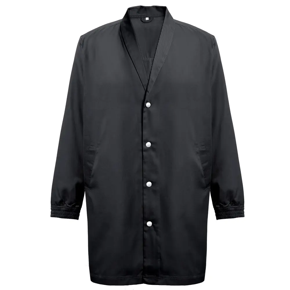 Workwear smock (unisex) 20% cotton and 80% polyester (190 g/m²). Elegant and modern cut with stylised collar and 2 side pockets. Elastic cuffs and buttoning with snap buttons. Opening at the back for greater freedom of movement. Sizes: S, M, L, XL, XXL, 3XL