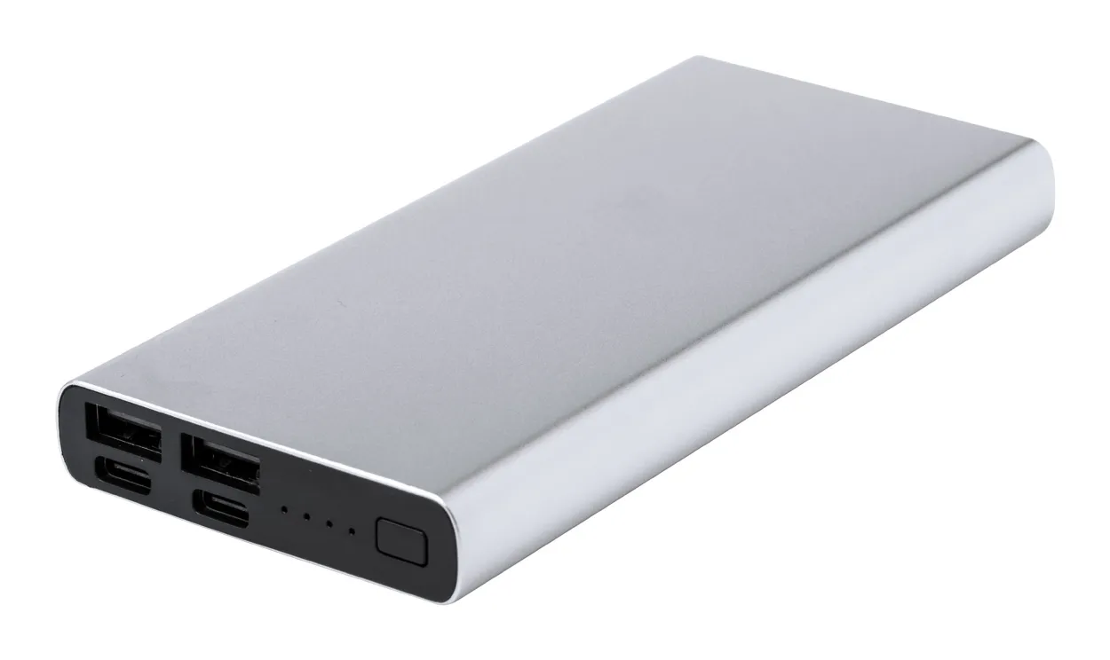 €46.26Aluminium USB power bank with 10000 mAh battery. With 2 USB and 2 USB-C charger ports. USB-C input port. Including USB charger cable.