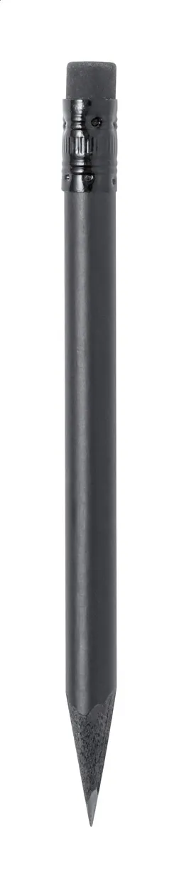 Wooden lead pencil with matte black finish and eraser, sharpened.