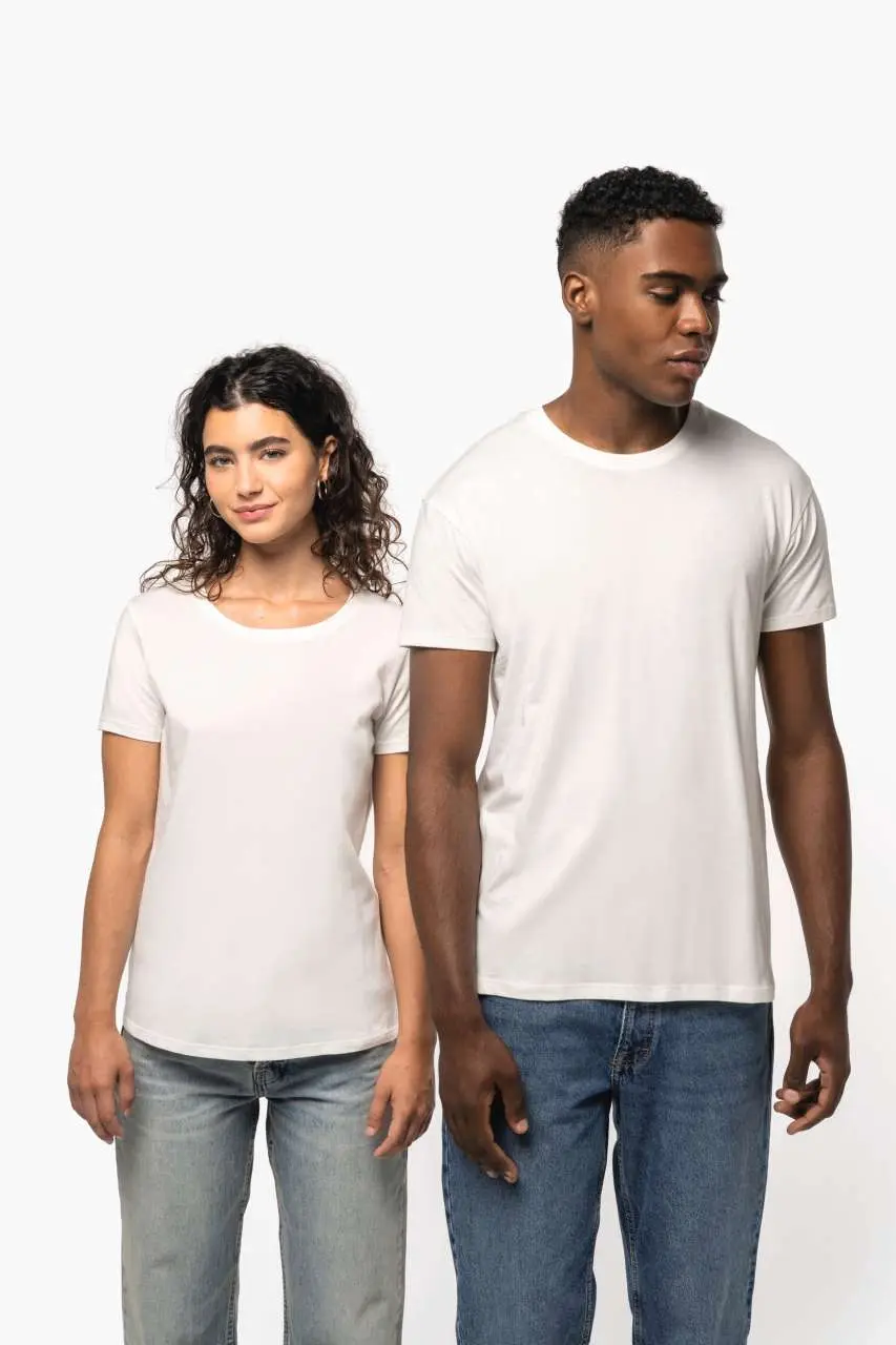 100% combed cotton Oxford Grey colourway: 90% cotton / 10% viscose All colourways are made from 'organic in conversion’ cotton Straight fit Cut and sewn 1x1 rib collar with rib-stitching finish Matching taped neck finish in the main material inside the collar Double overstitching finish on the cuff and bottom hem No brand label, only a tear-off size tag for easy decoration