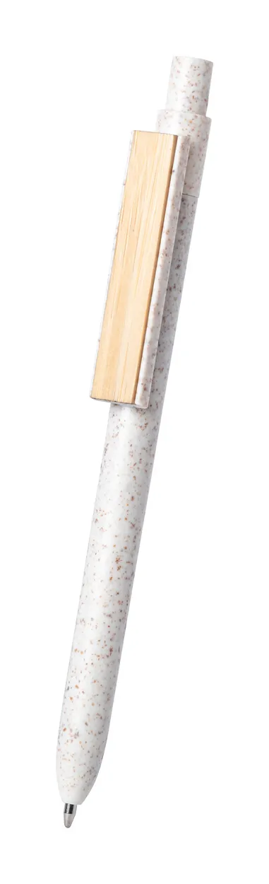 Ecological wheat straw plastic ballpoint pen with bamboo clip. With blue refill.