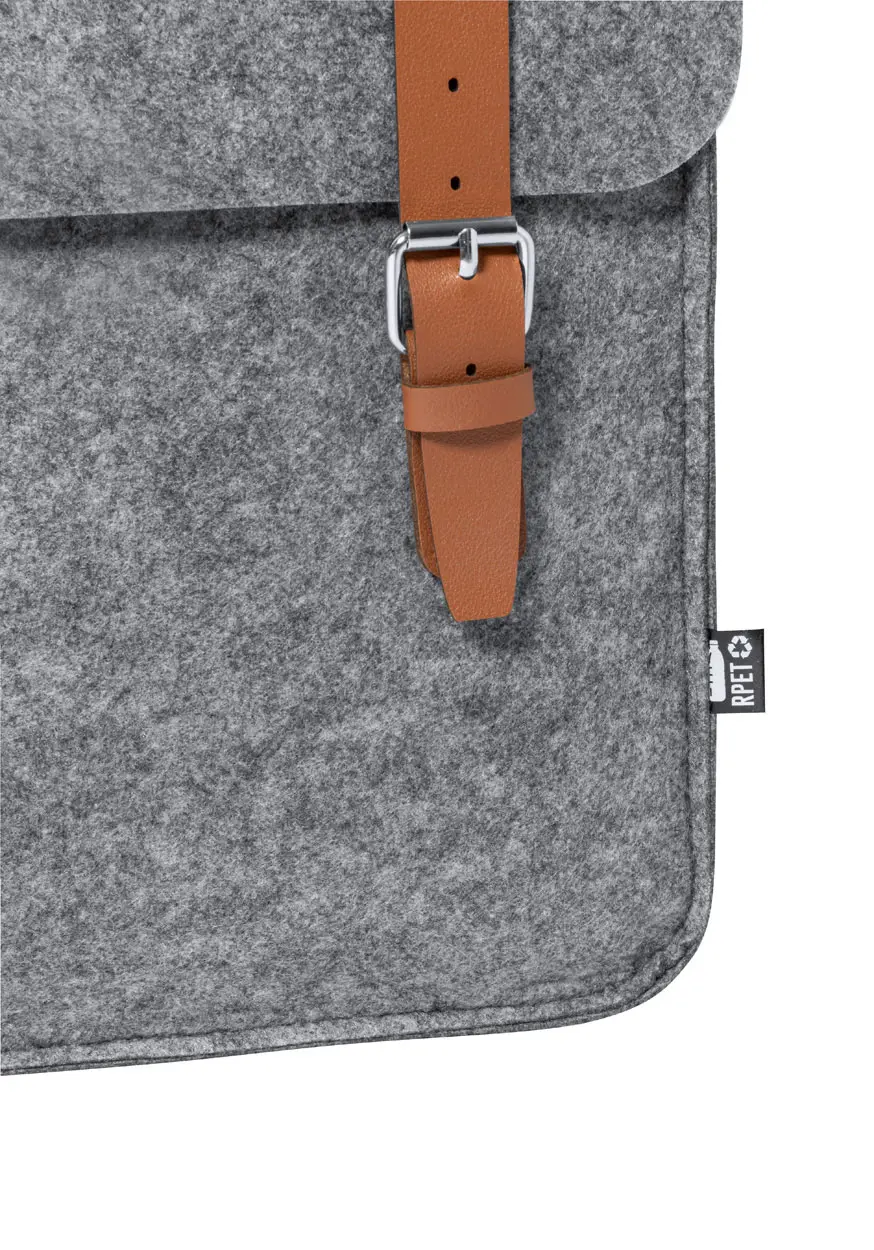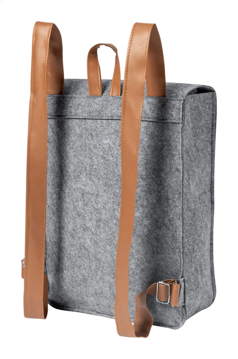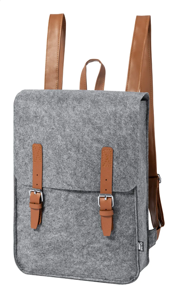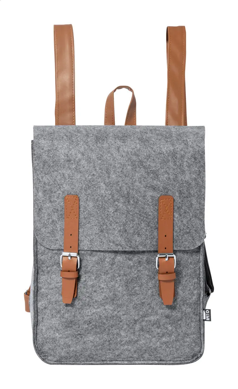 RPET felt backpack with PU leather accessories and buckle closure. With distinctive RPET label.