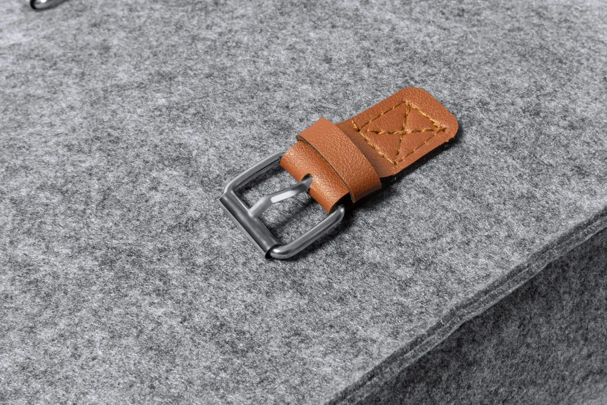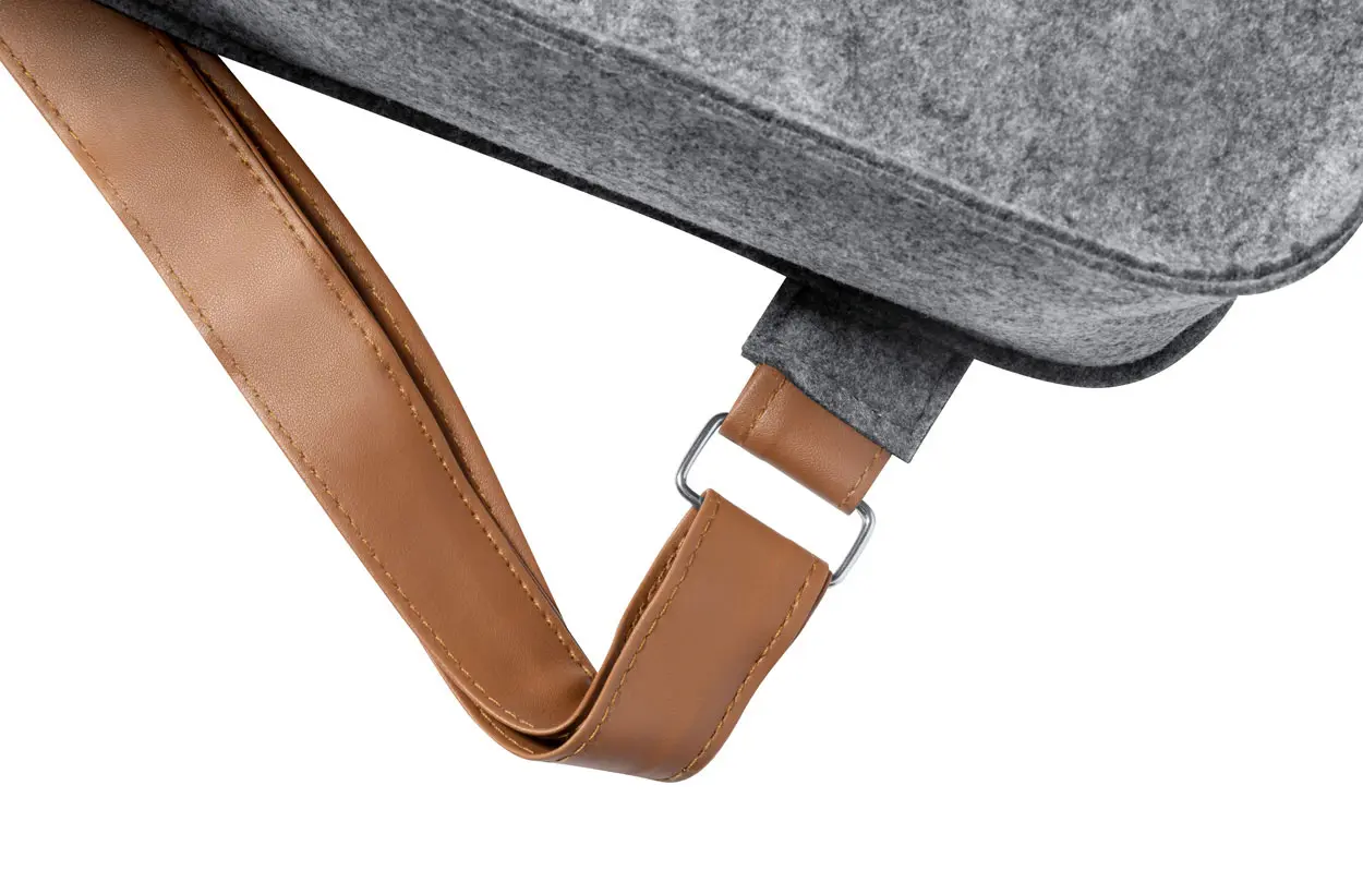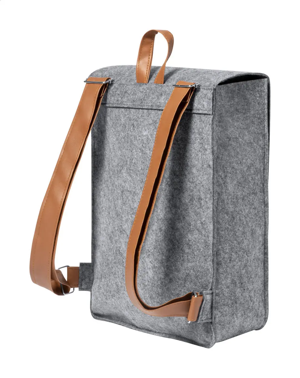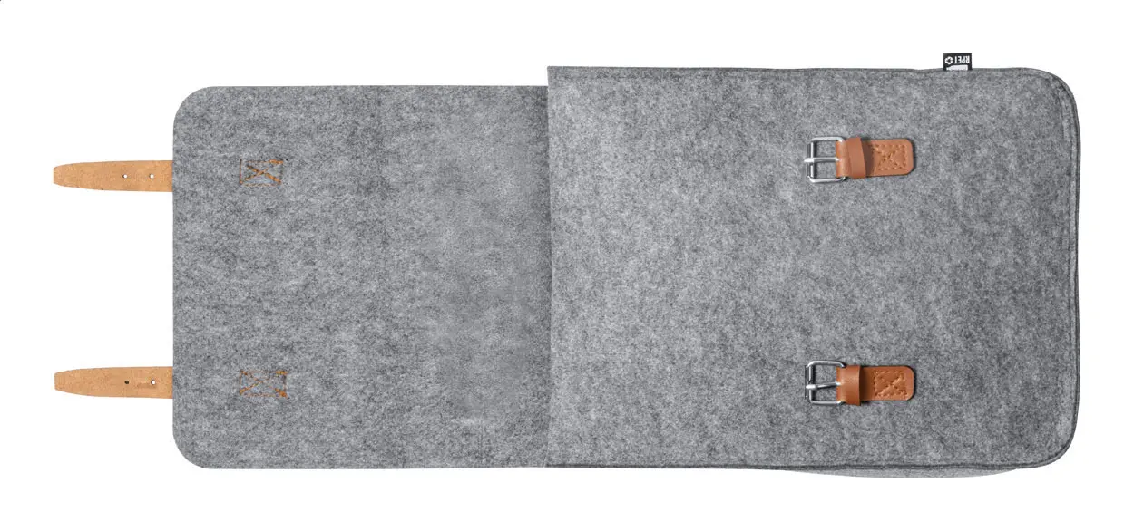 RPET felt backpack with PU leather accessories and buckle closure. With distinctive RPET label.