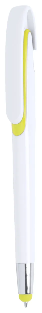 Plastic ballpoint and touch screen pen with coloured decoration. With blue refill.