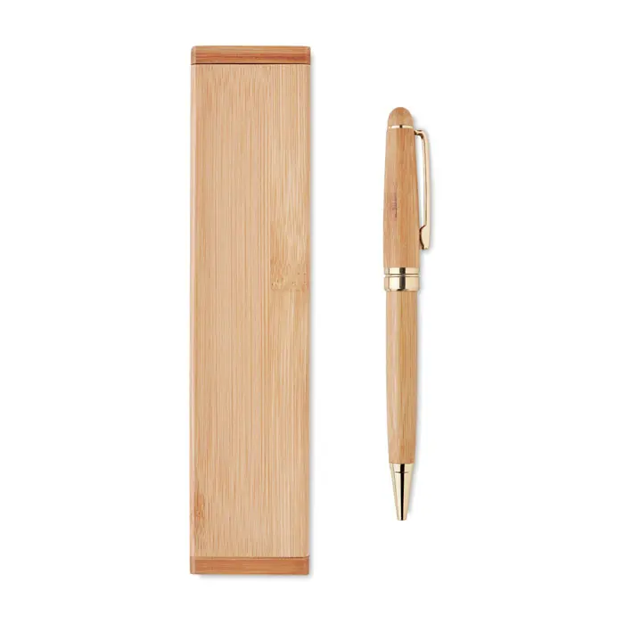 €5.85Gift set s kemijskom olovkom na okretanje u kutiji od bambusa Plava tinta Bambus je prirodan materijal, moguća su manja odstupanja u boji i veličini pojedinog proizvoda, što može utjecati na konačni izgled ukrasa