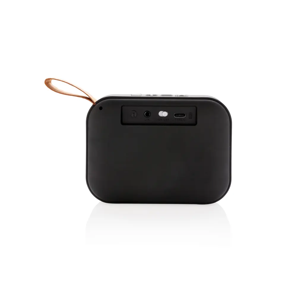 €12.81Bežični zvučnik 3W kućište od ABS materijala s soft touch završnom obradom i tkaninom na rešetki donja strana ima gumene trake za bolju kvalitetu zvuka i prianjanje baterija 300 mAh omogućuje do 3 sata reprodukcije domet do 10 metara s BT 5.0 uključuje USB-C kabel za punjenje kompatibilan sa svim mobilnim telefonima