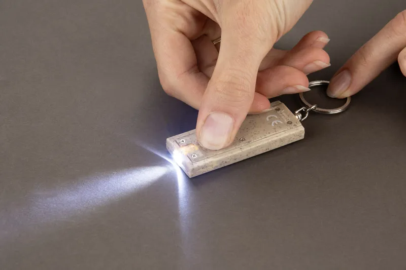SLOMI je mala i lagana svjetiljka na privjesku izrađena od materijala s dodatkom pšenične slame, kompaktan dizajn omogućuje jednostavno pričvršćivanje na ključeve, ruksake ili torbe