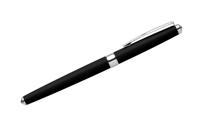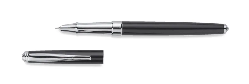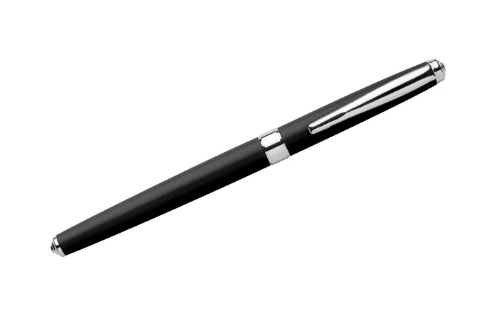 €4.45Nalivpero NEVADA izrađeno od metala s kromiranim završecima, tijelo premazano bojom, pero skriveno unutar tijela, opremljeno konverterom, mogućnost izrade seta za pisanje s kemijskom olovkom istog uzorka