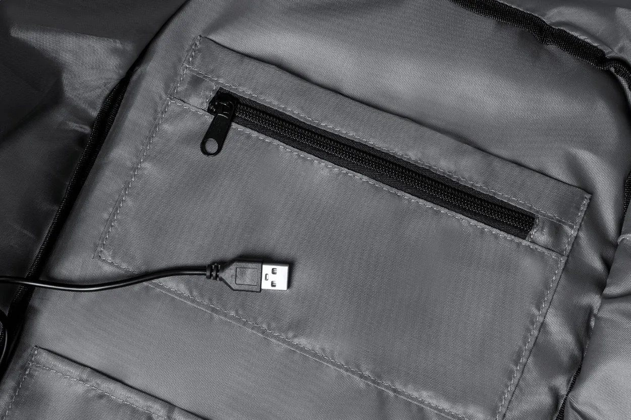 €25.94Waterproof, anti-theft backpack with multiple zipped compartments, padded laptop (15") and tablet (10") compartment, trolley strap, padded back and shoulder strap. With built-in USB connection for power banks. 600D polyester.