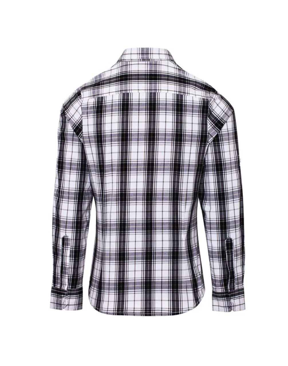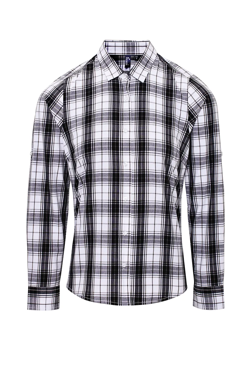 Fabric 100% Cotton Yarn Dyed Poplin 115gsm Features Roll sleeve option with button and tab fastening on the upper arm Double button cuff for full sleeve option Narrow soft collar styling Bust and back darts Modern fit