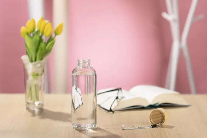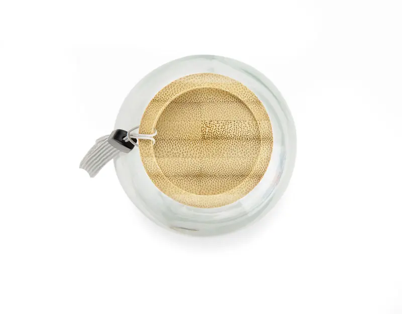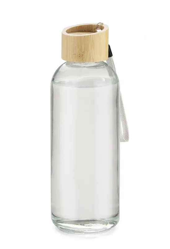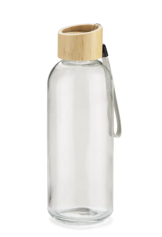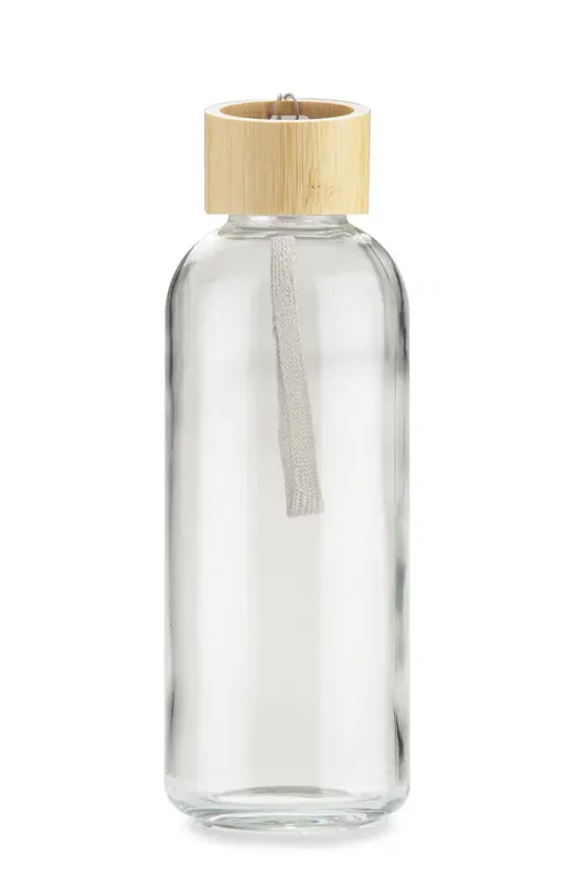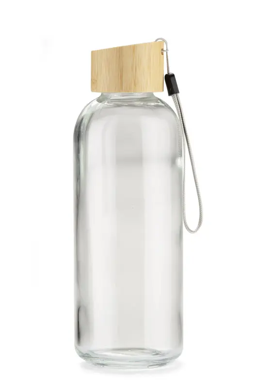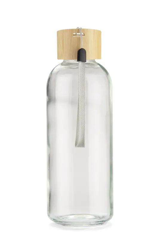 VITRO staklena boca od borosilikatnog stakla zapremnine 650 ml, otporna na temperaturne promjene, poklopac od bambusa s kosim rubom, uključena vezica za nošenje