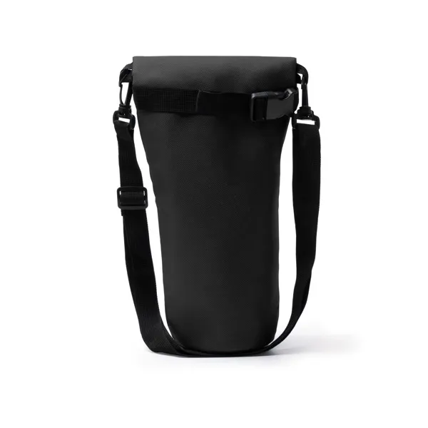 Cooler for bottles up to 1.5 L. Made from 600D RPET on the exterior, with optimal thermal insulation on the interior. Features a top zip with adjustable buckle. Also includes an adjustable shoulder strap with carabiners at both ends making it more comfortable to carry and adjust.