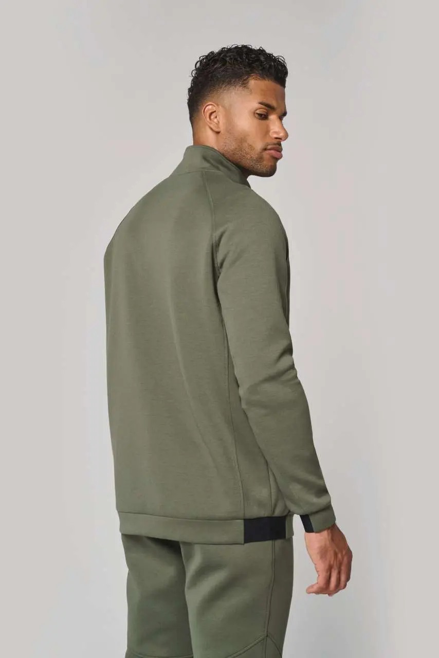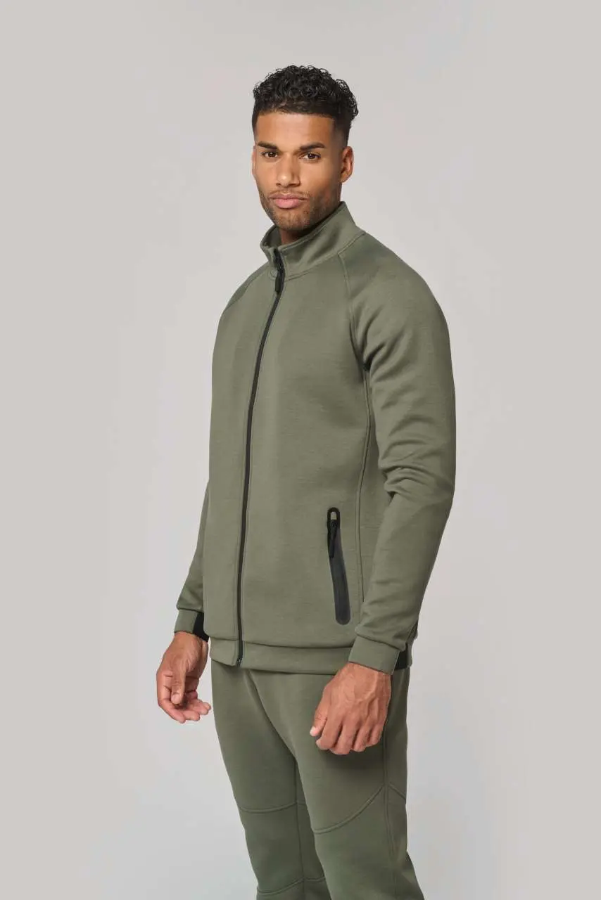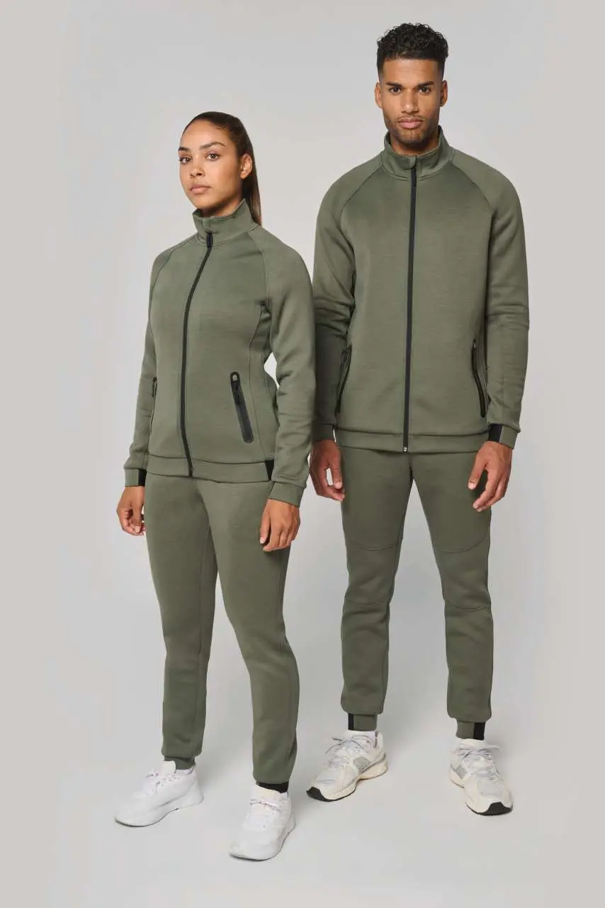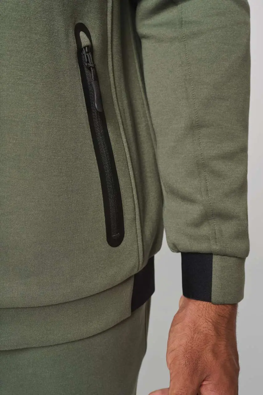 94% poliester/6% elastan (79% poliester/15% viskoza/6% elastan za mramorne boje) Izuzetno udobna tkanina Zatvaranje na patentni zatvarač 2 toplinski zapečaćena džepa s patentnim zatvaračem na prednjoj strani Manšete i rub s kontrastnim elastičnim dijelom Crna na svim bojama i tamno siva na pepeljasto sivoj Kontrastni patentni zatvarači Idealno za nošenje s trenirka hlačama PA1008 za potpuni Urban Apparel izgled