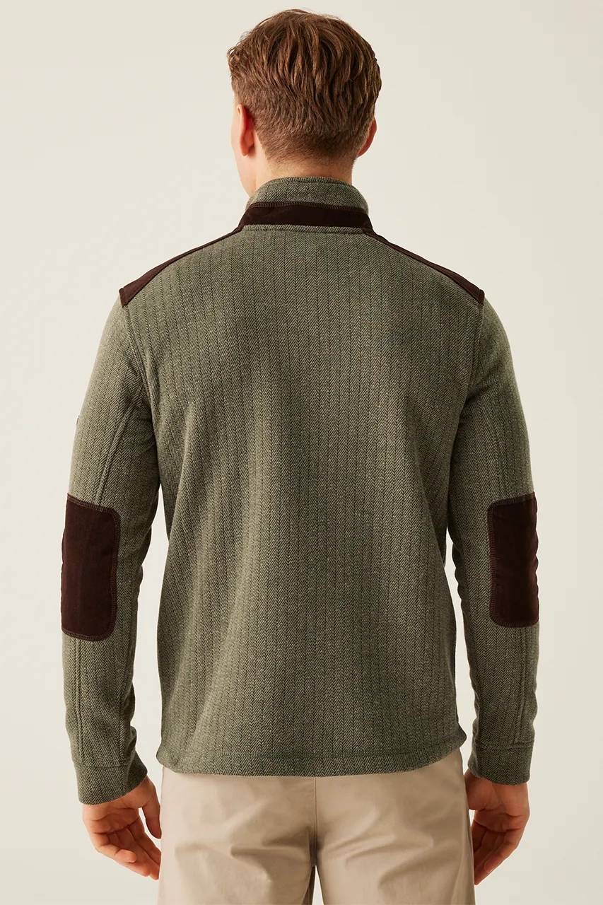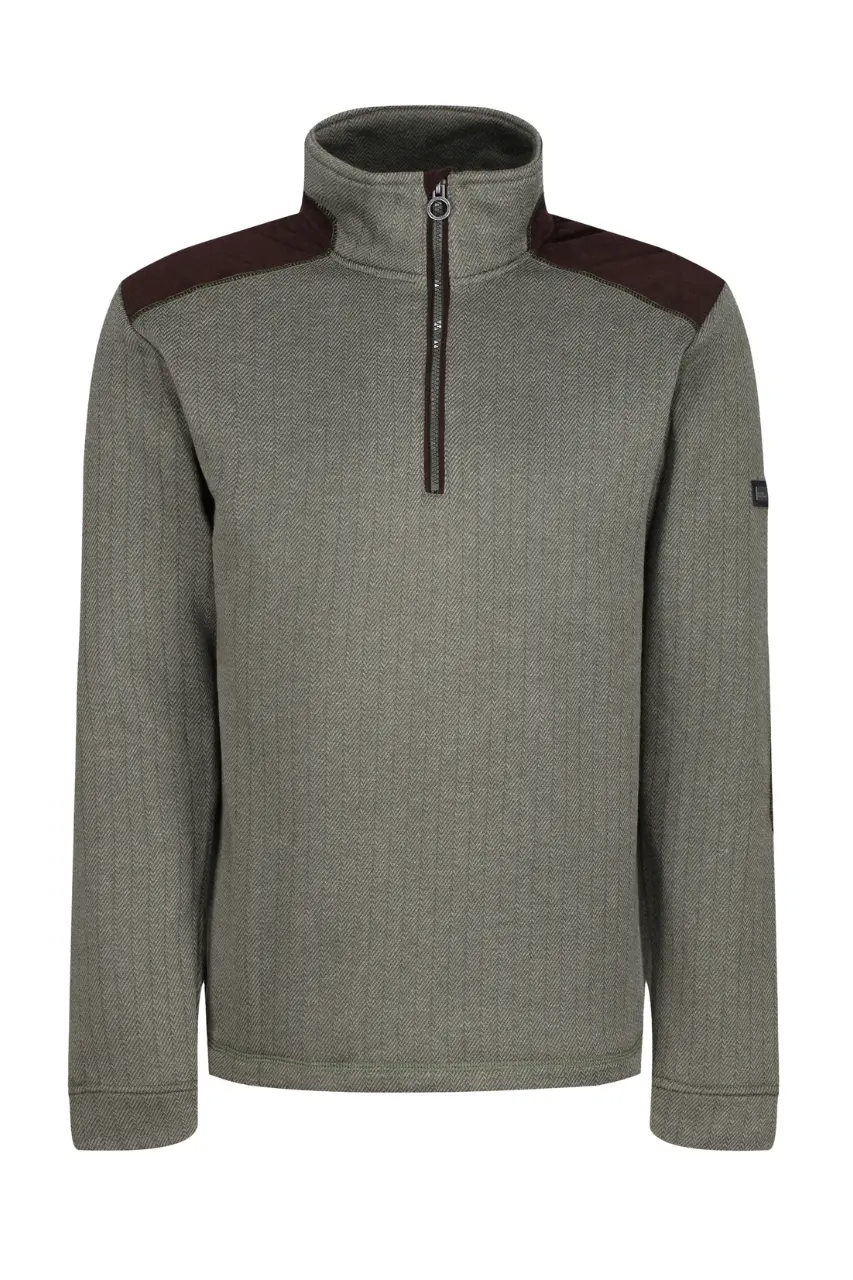 Tkanina: 12% viskoza/rayon, 88% poliester 260 g/m2 žakard flis s uzorkom riblje kosti paneli od kord tkanine na ramenima i laktovima posebnosti: polu-patentni zatvarač manšete od iste tkanine