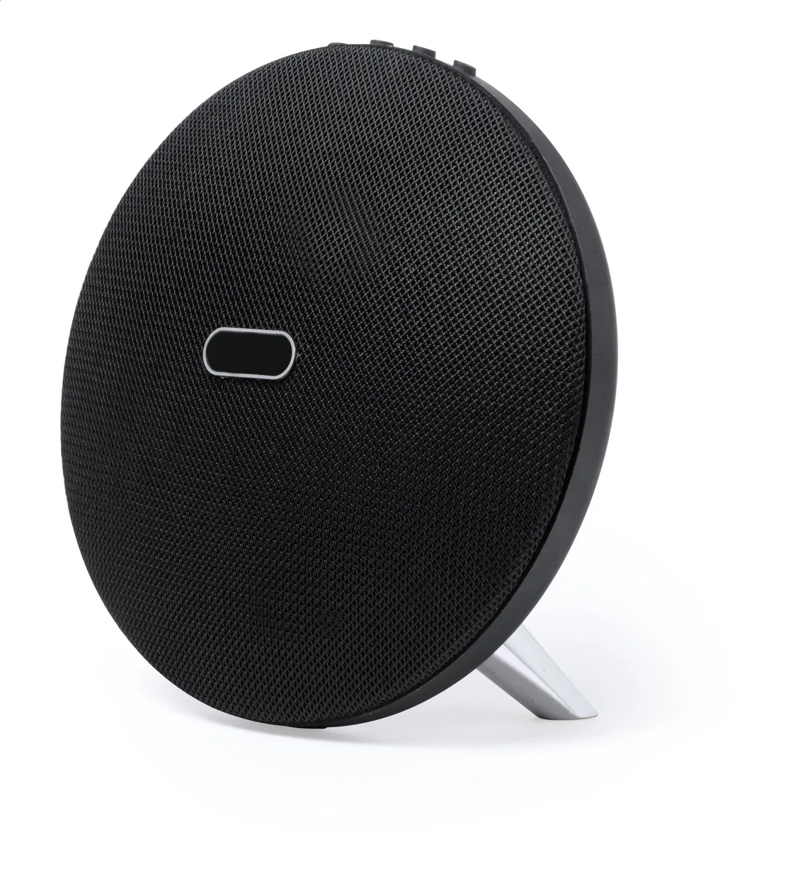 Crni Bluetooth zvučnik sa srebrnim dodacima, snaga 8W, funkcija hands-free i utor za micro SD karticu do 32GB, uključuje mini USB kabel za punjenje i 3,5 mm pomoćni kabel
